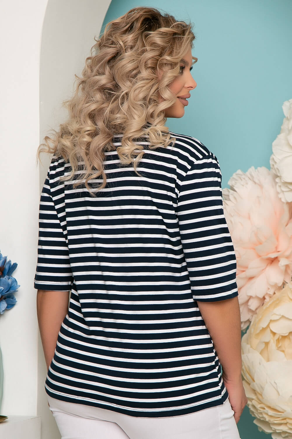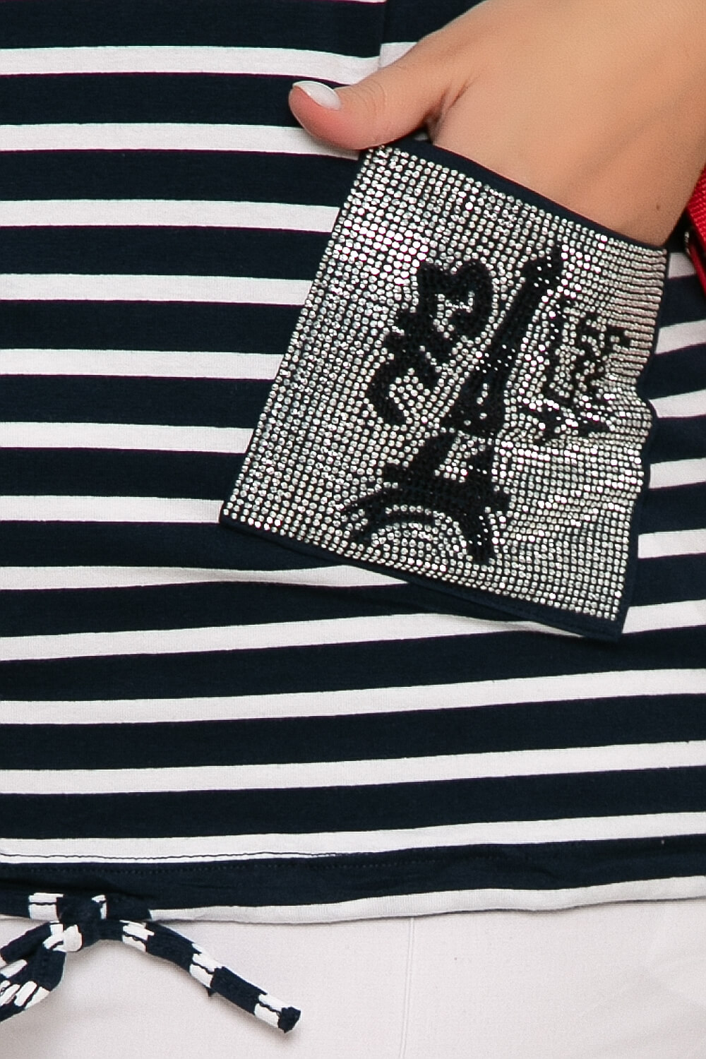 - Цвет: белый, синий, принт: полоска;