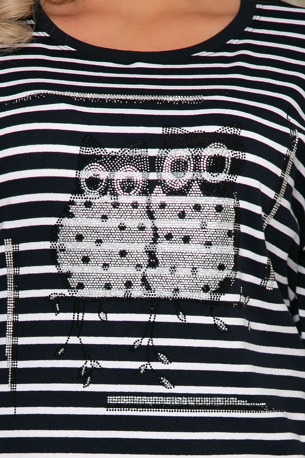 Футболка с рукавом 3/4 из плотного трикотажа с декором из страз. Прекрасно сочетается с джинсами, лосинами, брючками. Футболка свободного кроя, рукав втачной, три четверти. Перед футболки украшают два очаровательные совушки. По низу притачной пояс.