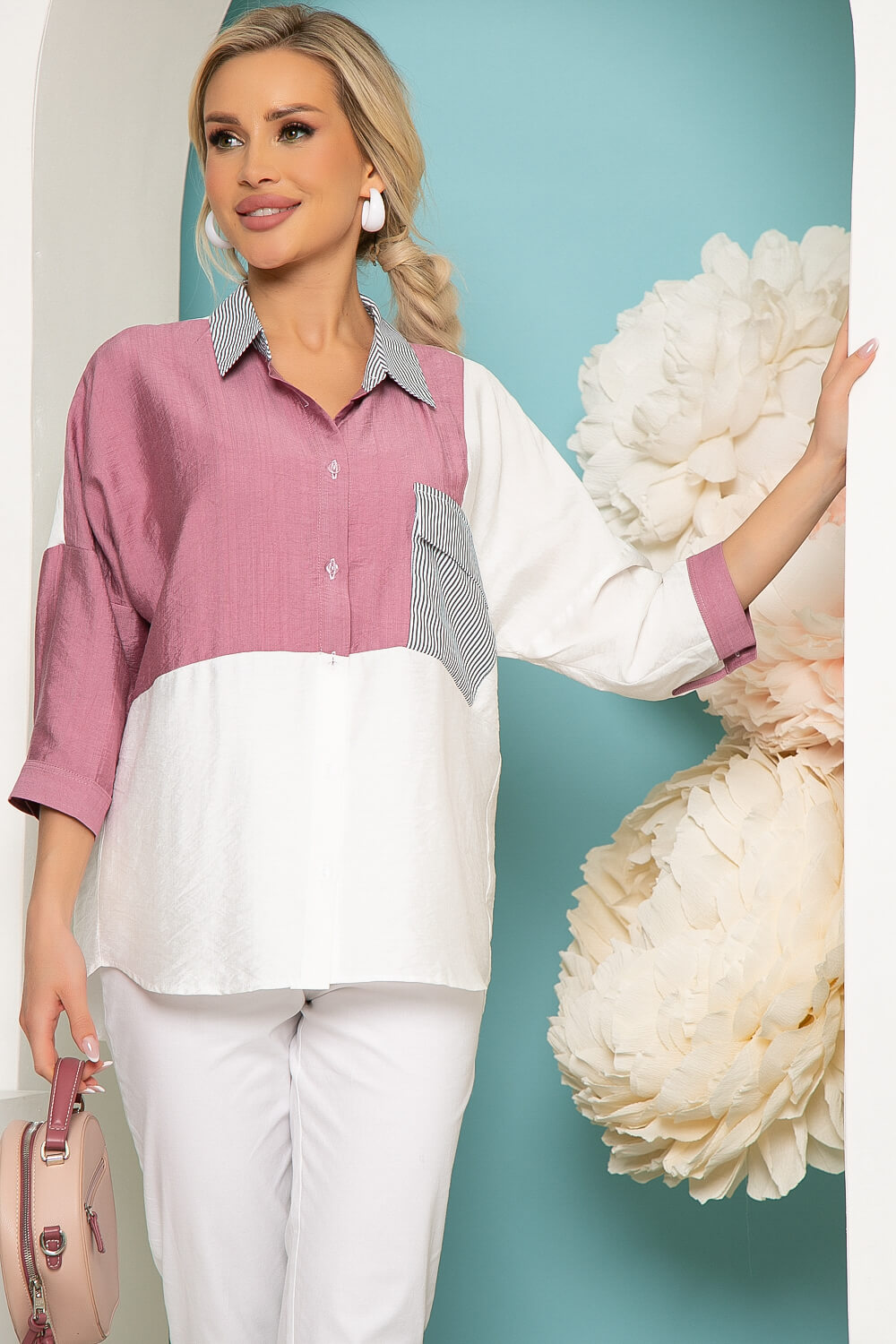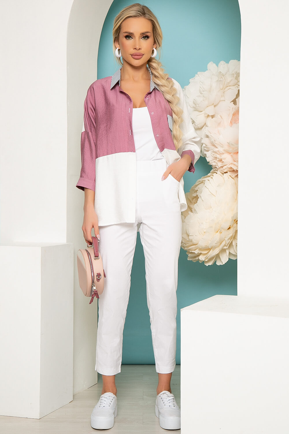 - Цвет: белый, пыльная роза. Принт: полоска (кармашек, воротник);