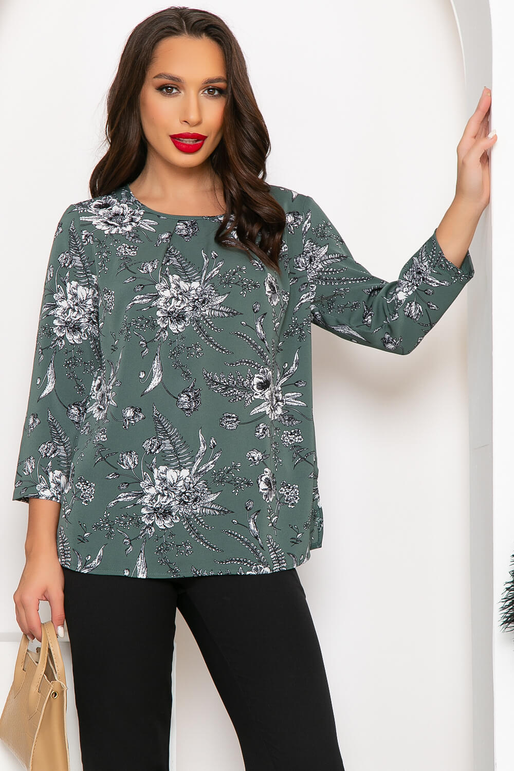 Классический вариант блузы, украшенный женственным цветочным принтом. Блуза прямого кроя имеет небольшие разрезу по боковым швам, что позволят носить её навыпуск или под заправку. Пояс из основной ткани при желании подчеркнёт линию талии. Удобная длина рукава - семь восьмых.