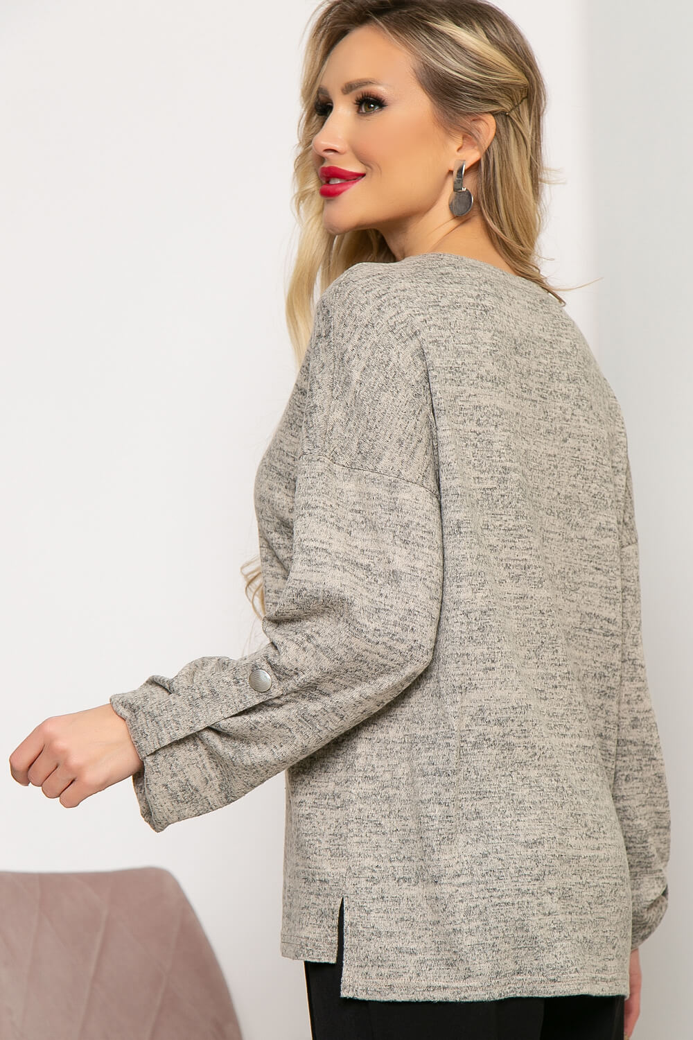 Базовый джемпер из мягкого трикотажа в песочном оттенке прекрасно подойдёт для создания повседневных образов. Длинные втачные рукава со спущенной плечевой линией. По низу рукав собран на декоративную пату. Джемпер имеет ассиметричный крой: спинка удлинена, по боковым швам есть небольшие разрезы.