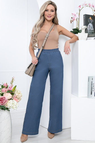 Современная женщина мечтает сделать свой гардероб не только стильным, но и максимально комфортным. Именно поэтому широкие брюки должны быть у каждой модницы. Они отлично смотрятся с футболками или топами. Талия на резинке.
