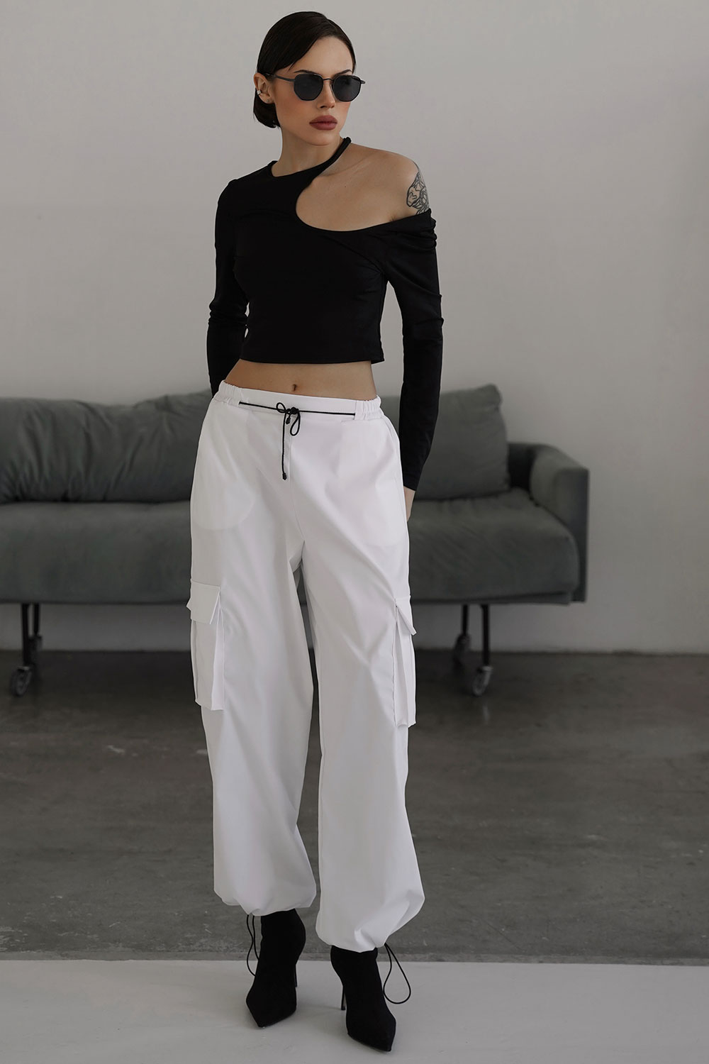 Хит этого сезона - брюки карго! Свободные брюки с несколькими накладными карманами универсальны и подходят для любого типа фигуры. Брюки по талии на шнурке, а по спинке резинка. По низу изделия шнурок с фиксатором.
