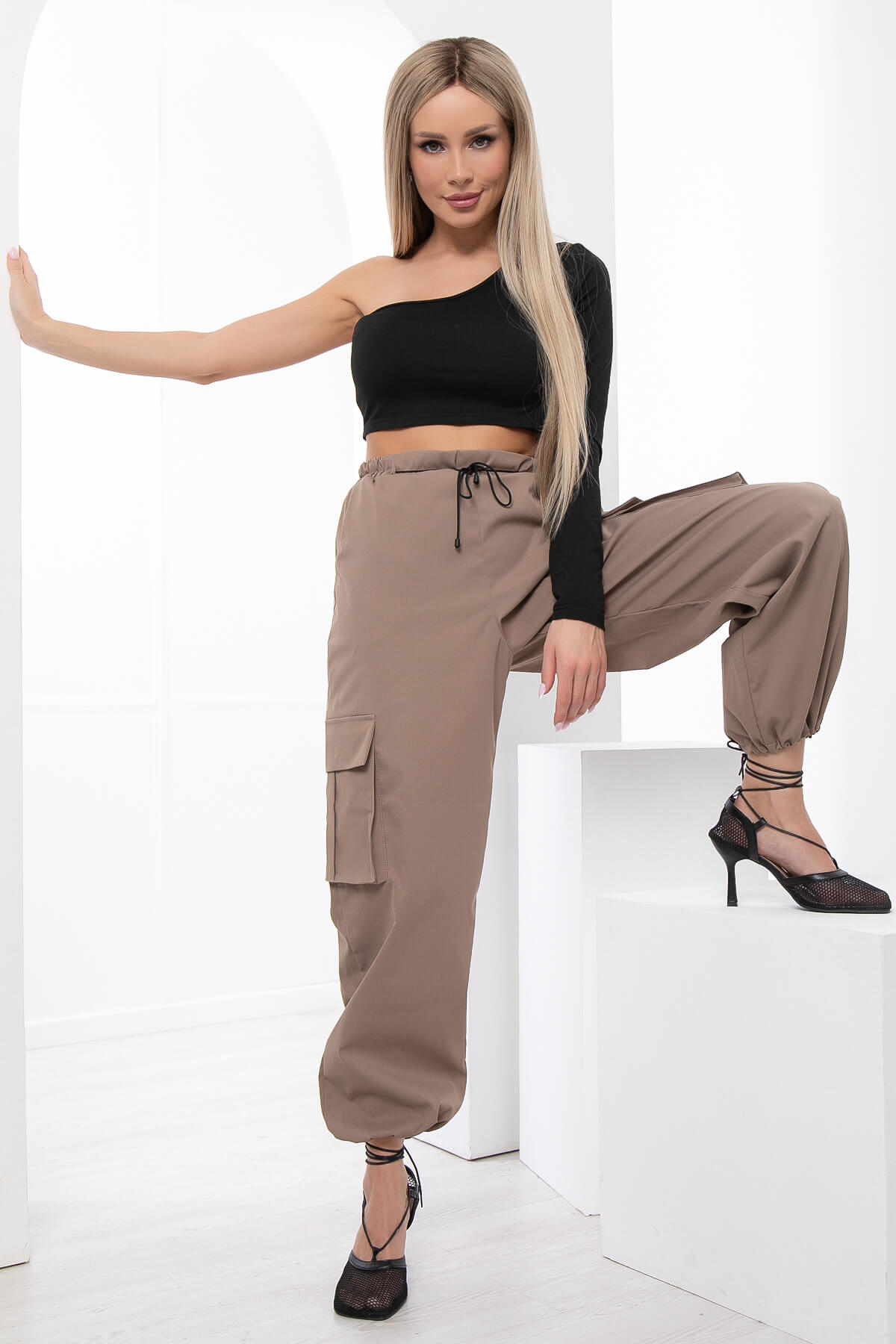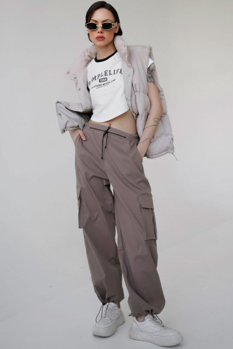 Хит этого сезона - брюки карго! Свободные брюки с несколькими накладными карманами универсальны и подходят для любого типа фигуры. Брюки по талии на шнурке, а по спинке резинка. По низу изделия шнурок с фиксатором.