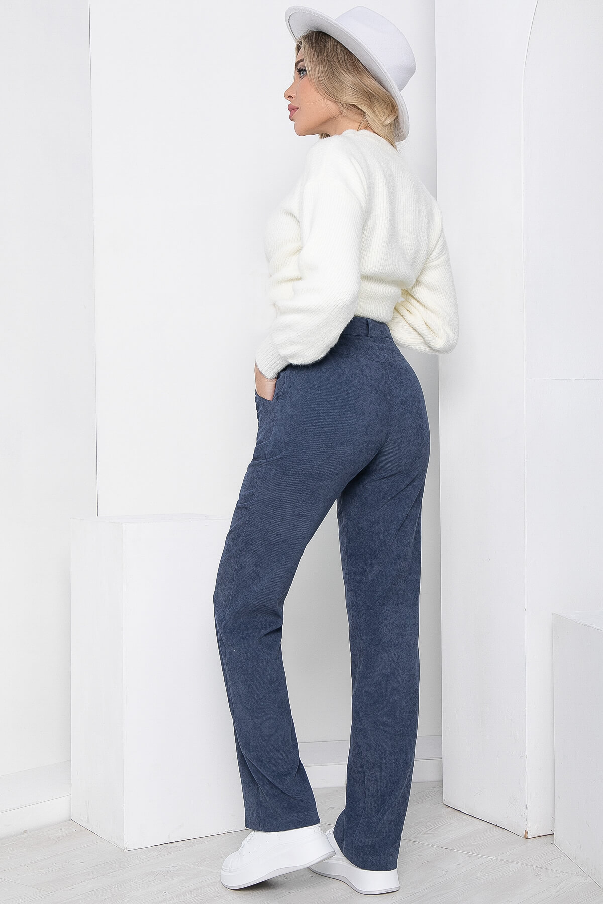 Практичные и комфортные брюки из вельвета. Модель выполнена в классическом варианте - прямой крой, притачной пояс со шлёвками для ремня. Есть карманы. Такой вариант брюк прекрасно подойдёт для работы в офисе или просто на каждый день.