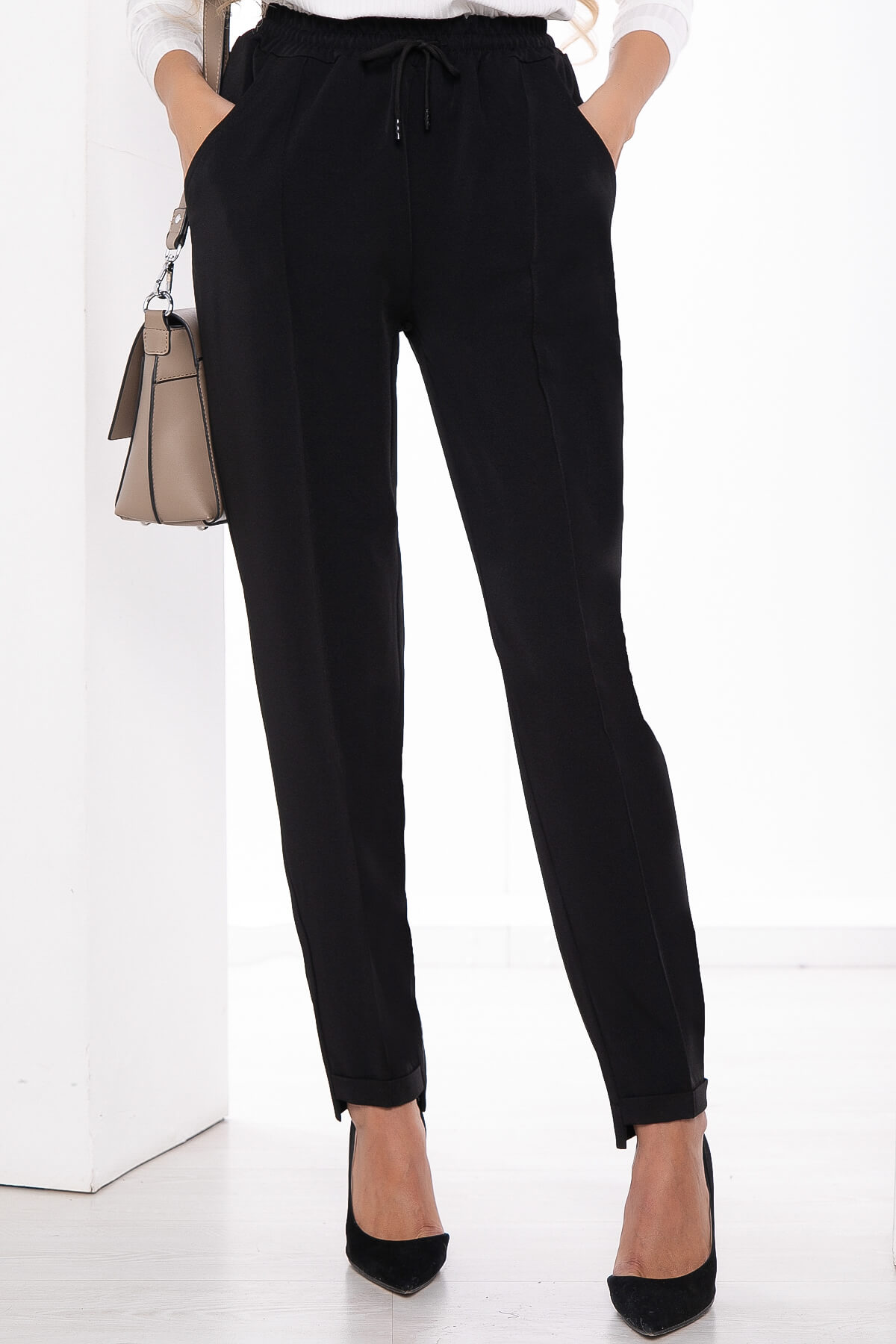 Стильные брюки из костюмной ткани для повседневного образа. Удобная талия на резинке с кулиской подчеркивает достоинства фигуры. Ассиметричный низ брюк завершает модный стиль. Подбирая разнообразный верх, можно создавать множество стильных образов. Зауженные брюки со стрелками визуально делают ножки еще стройнее.