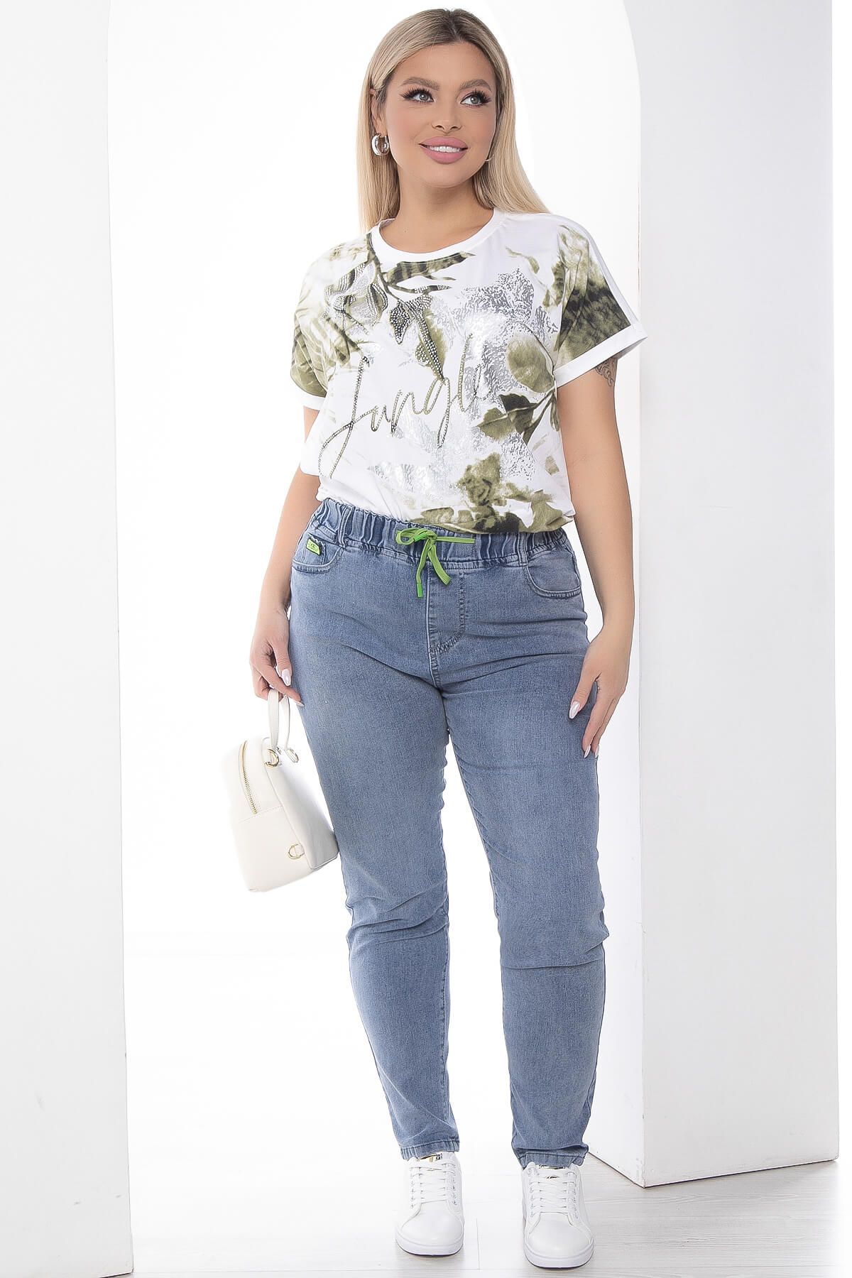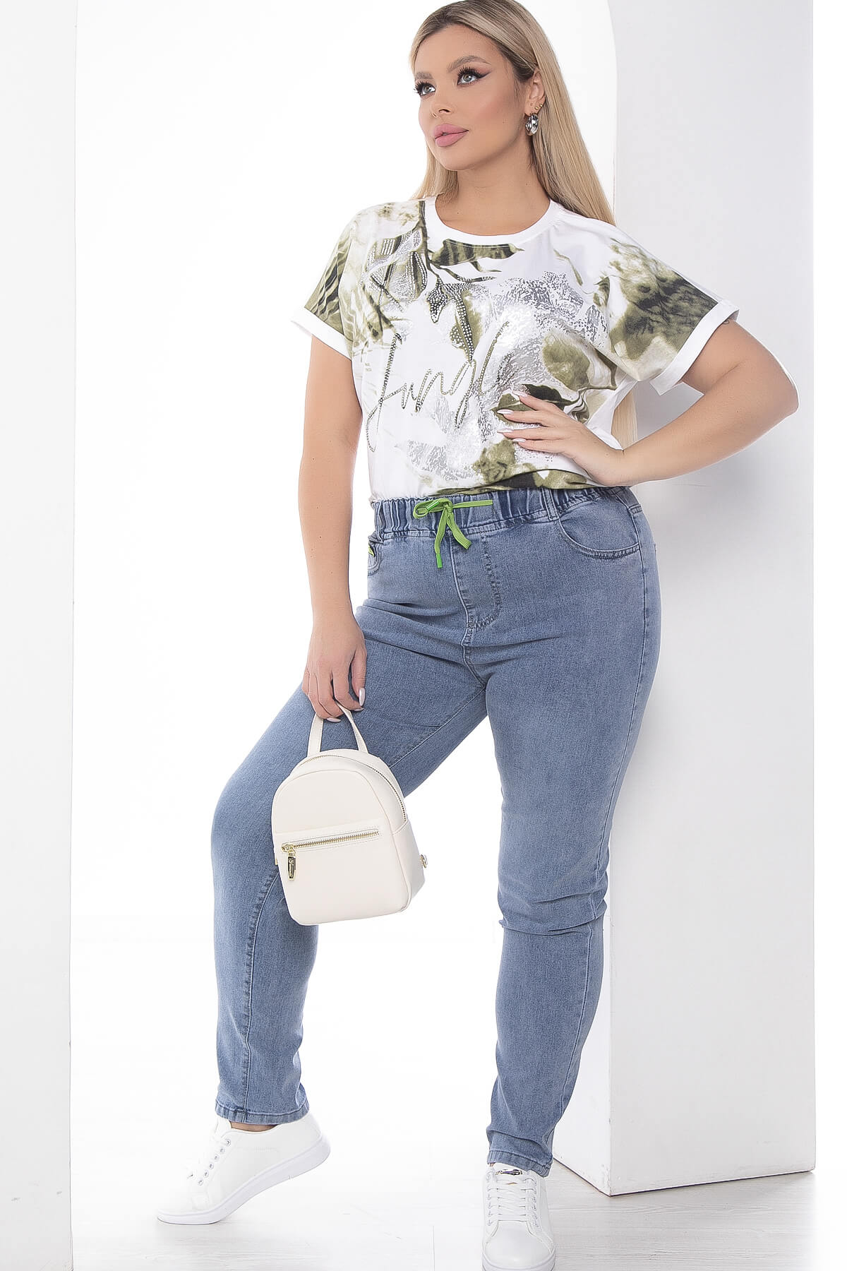 Джинсы прямые с поясом на резинке и шнурком салатного цвета идеальны для прогулки и повседневной жизни. Карманы потайные расположены спереди и 2 накладных карманчика сзади.