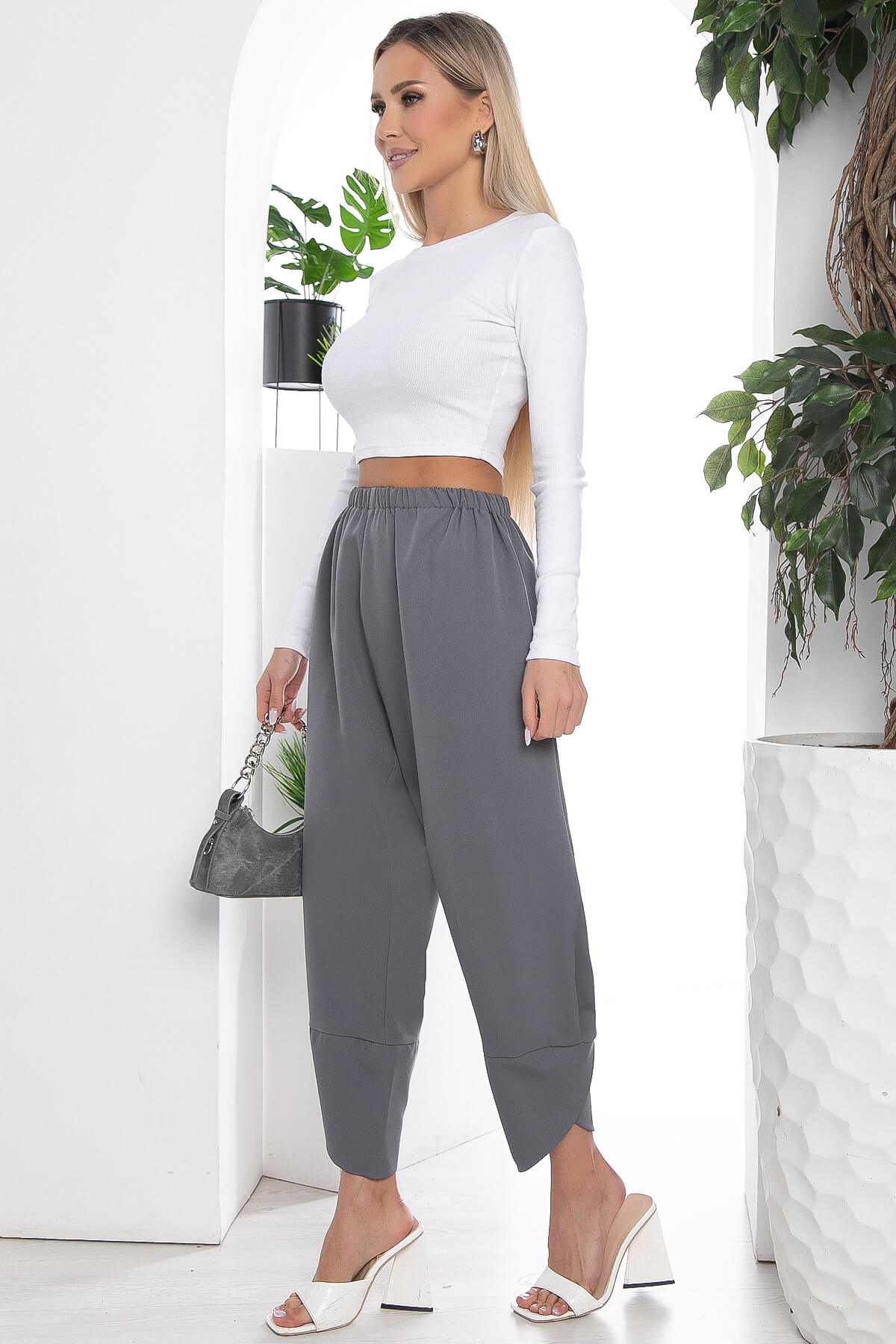 Объёмные брюки в стиле бохо - это свободный непринужденный стиль современной моды. Шароварный силуэт создается за счет резинки по талии, свободной посадки в бедрах, бокового защипа по низу и оригинального высокого манжета в виде тюльпана. Свободные, прямые, просторные брюки бананы выгодно подчеркивают женские формы и скрывают недостатки. Комбинируйте их с различными видами топов, джемперов, блузок или футболок. Брюки выполнены из комфортной в носке ткани, которая не вытягивается и не деформируется после стирки.