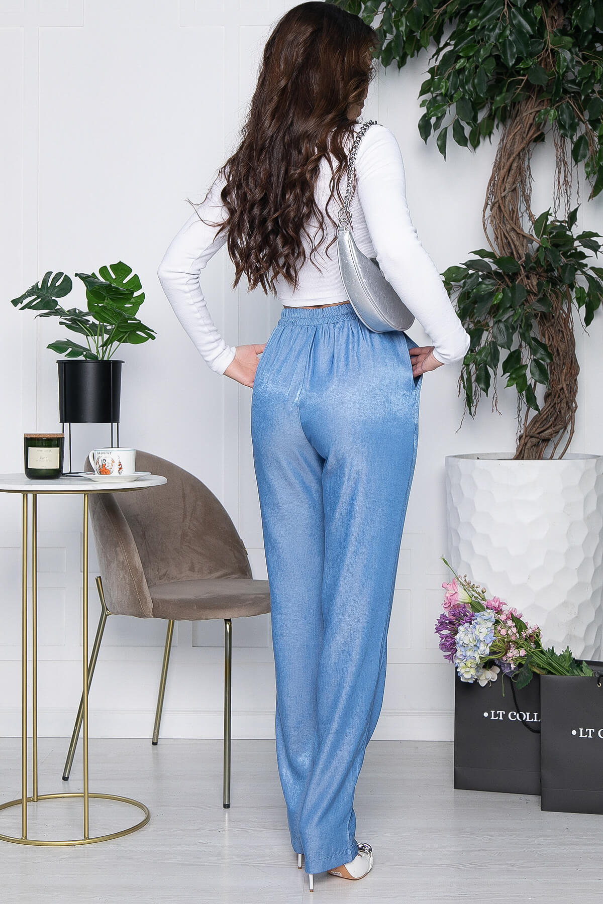 Стильные брюки в синем оттенке с лёгким блеском добавят индивидуальности в ваш образ! Идеальны для повседневных образов и великолепны для вечерних мероприятий. Эти брюки не просто обновление гардероба, а возможность выделиться и выразить свой взгляд на стиль. Брюки по талии на резинке, в боковых швах есть карманы.