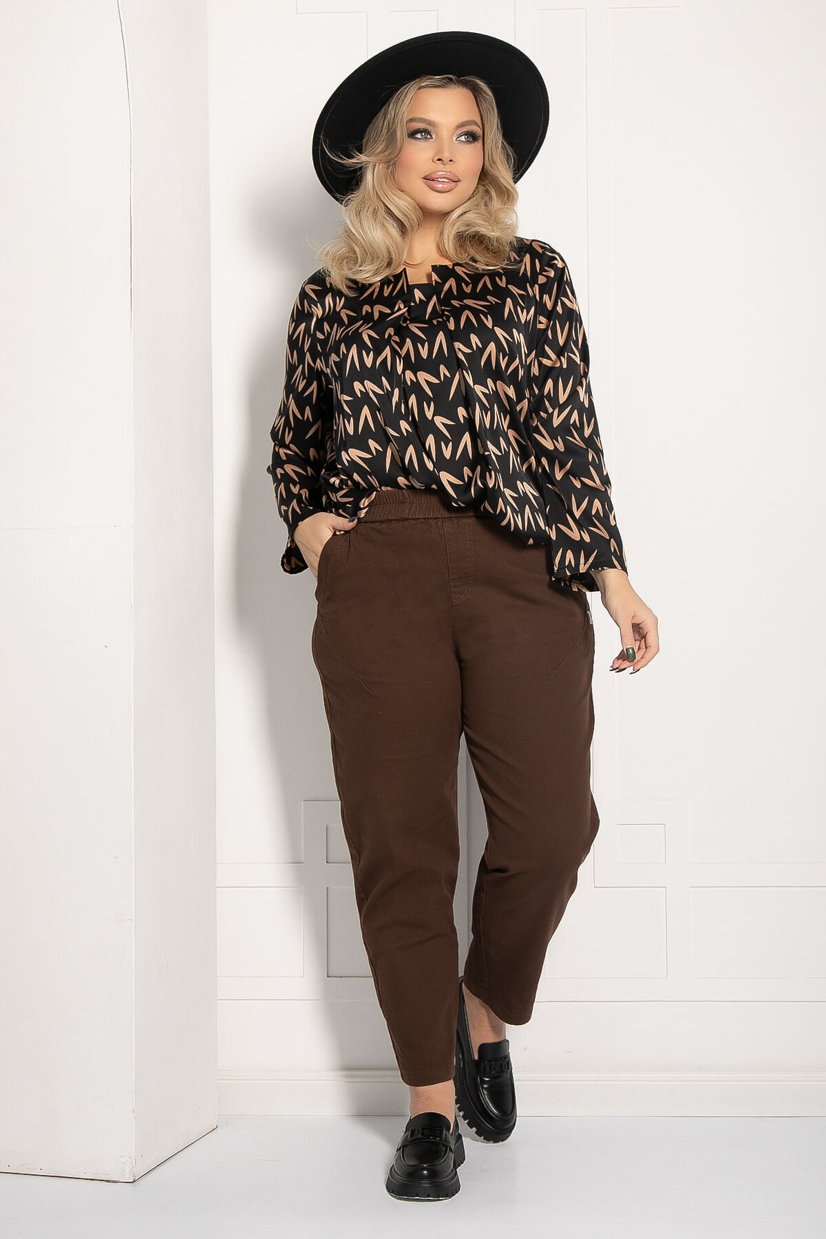 Джинсы выполнены в коричневом оттенке, который гармонично сочетается с любой верхней одеждой и обувью, что делает её универсальной для разных стилей. По талии резинка, что обеспечивает дополнительный комфорт. Карманы спереди и сзади добавляют практичности. Зауженный к низу крой придаёт образу современный и стильный вид. Отличный выбор для повседневного гардероба!