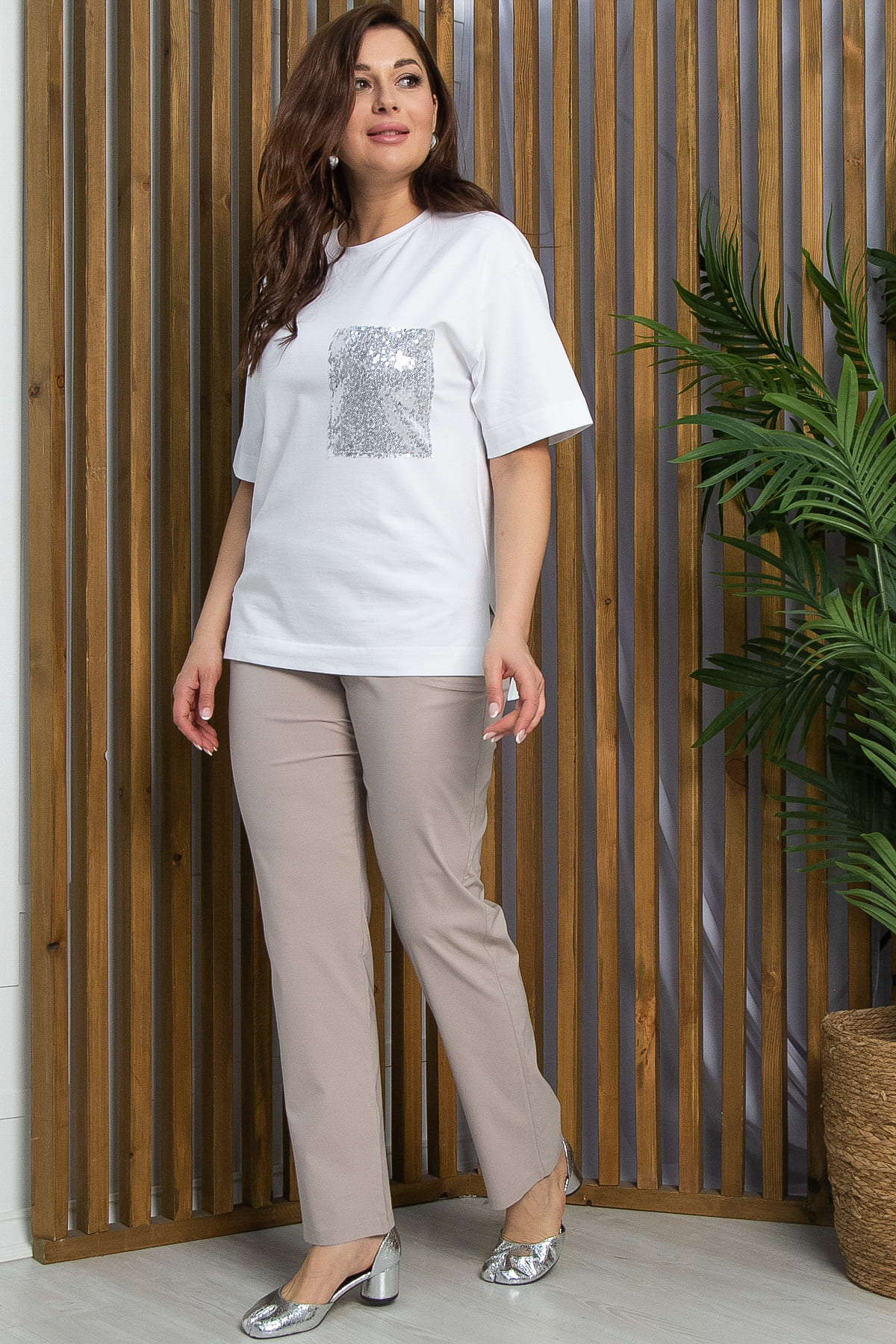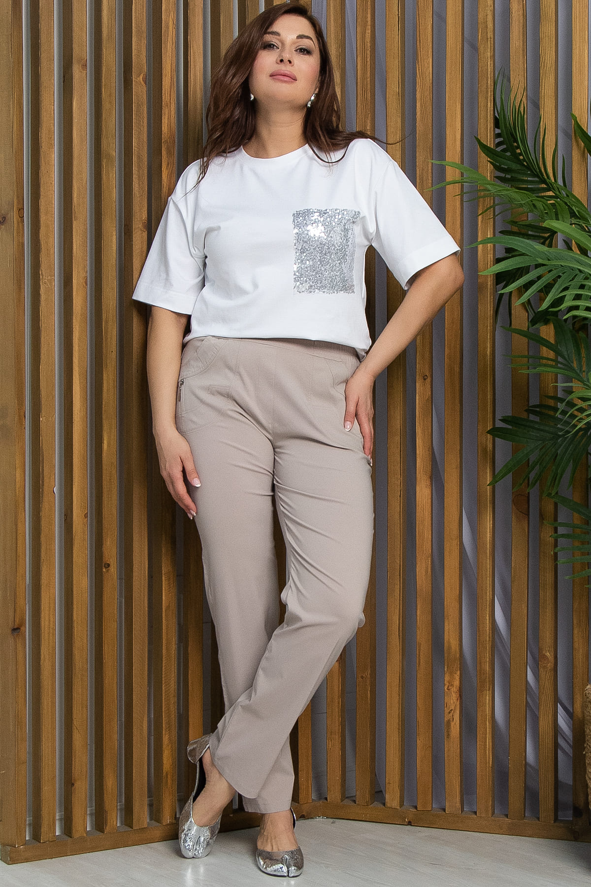 Брюки прямого кроя, полной длины — это идеальный вариант для создания стильного и комфортного образа. Благодаря притачному поясу на резинке, они обеспечивают удобную посадку. Спереди располагаются потайные карманы с декоративными замочками, которые придают изделию изюминку.
