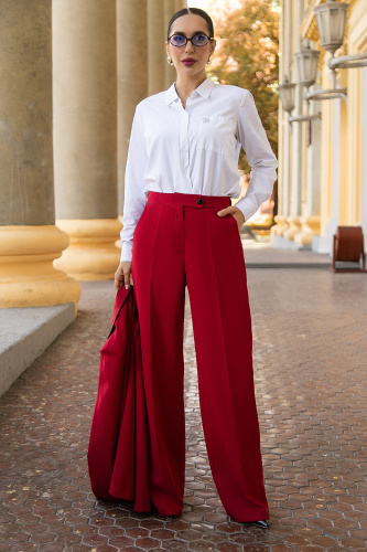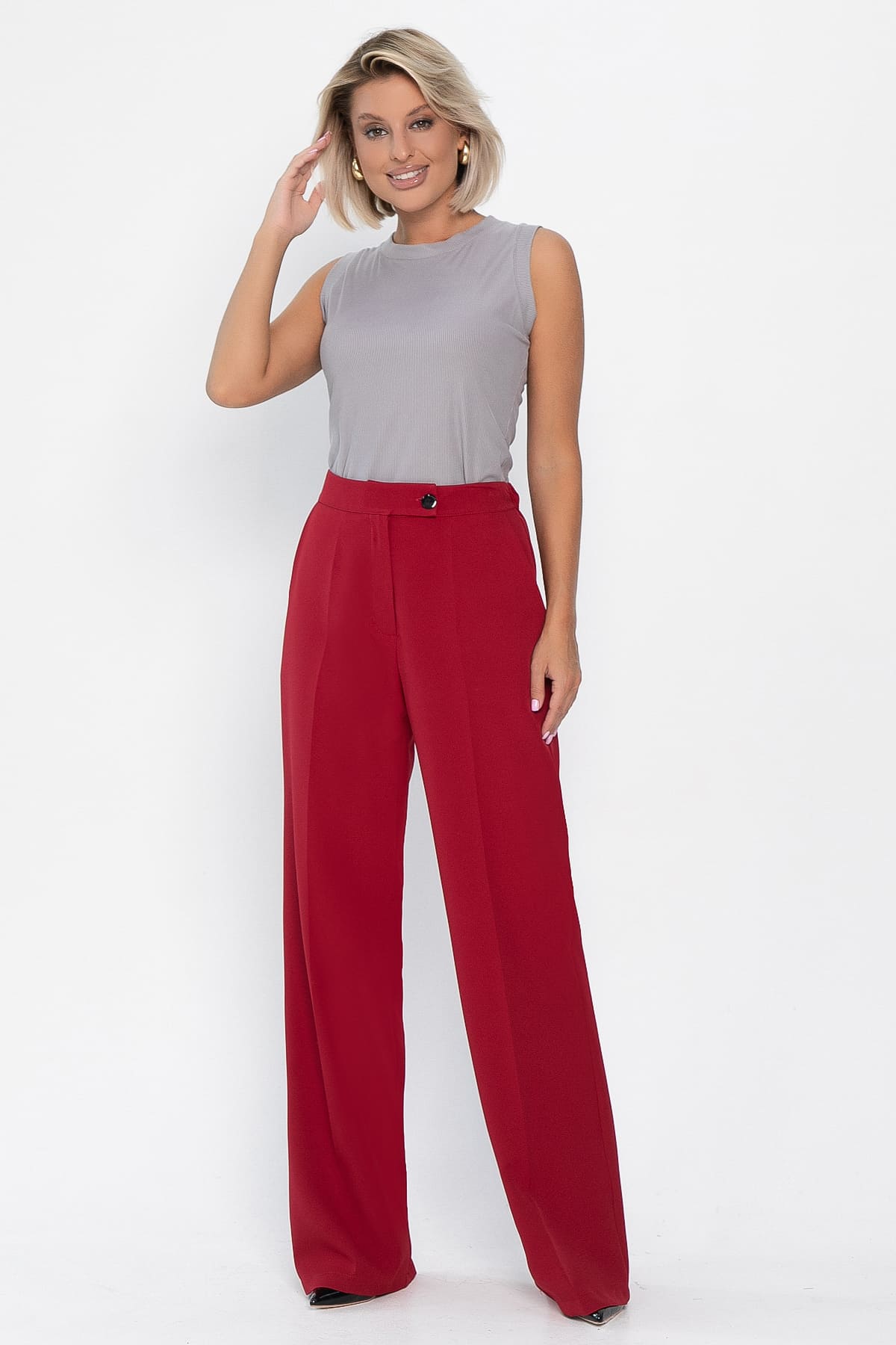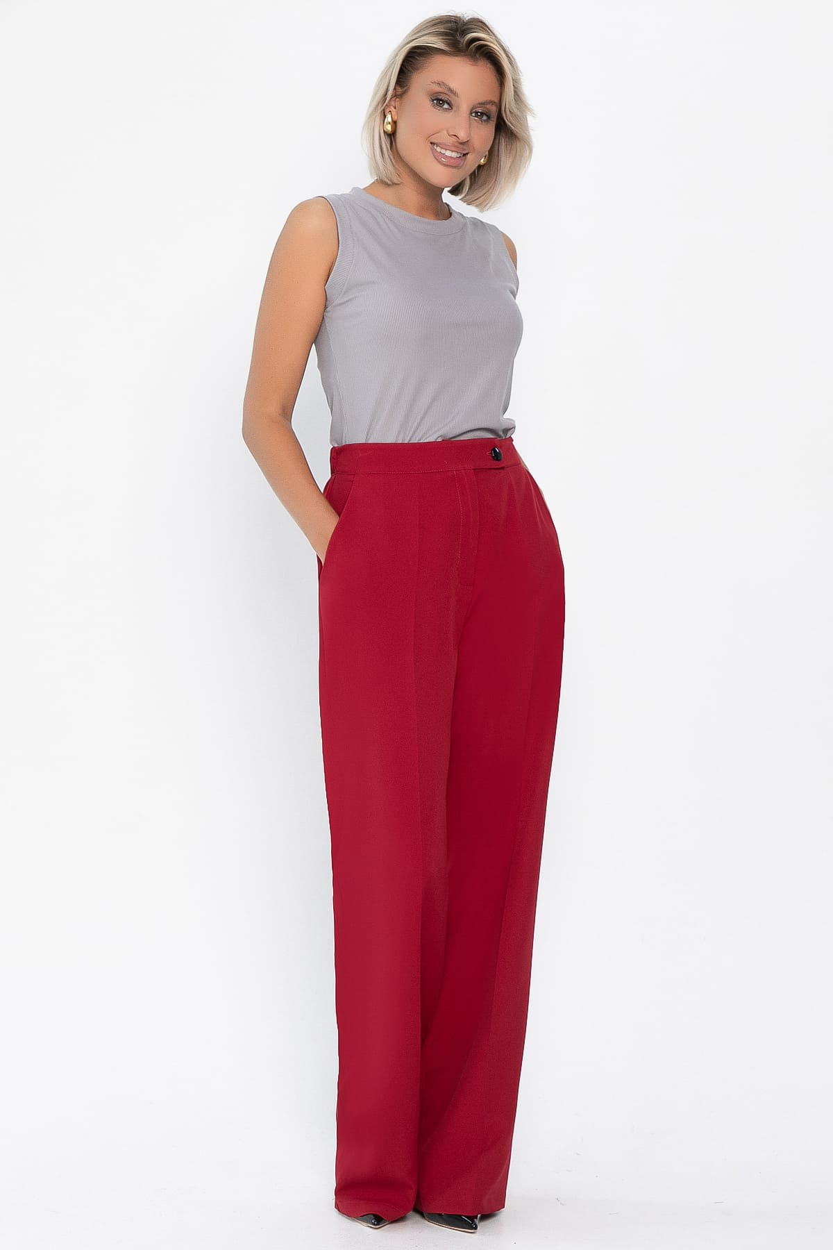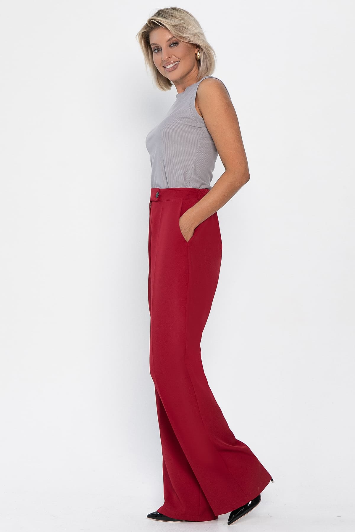 Элегантные классические брюки в бордовом цвете – основа вашего стильного гардероба! Высокая посадка выгодно подчеркивает талию, создавая женственный и утонченный силуэт. Для идеальной посадки по фигуре предусмотрена резинка по спинке пояса. Заутюженные стрелки визуально удлиняют ноги и придают брюкам строгий классический вид. Надежная застежка на молнию и пуговицу обеспечивает комфорт и уверенность в течение дня. Прекрасно вписываются в офисный дресс-код, идеально подходят для важных деловых встреч и добавляют элегантности вашему образу на особых мероприятиях.
