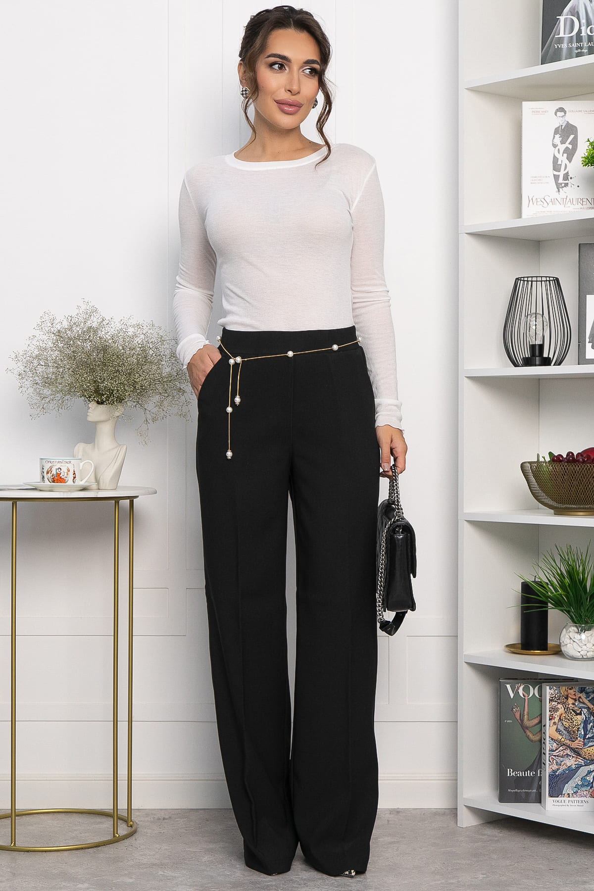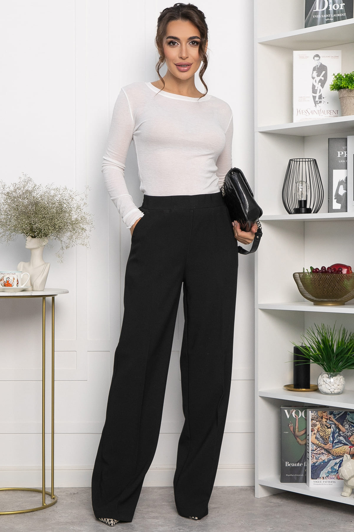 Стильные удлинённые брюки с высокой посадкой и прямым кроем — идеальный выбор для современного гардероба. Они отлично впишутся в повседневный гардероб и будут гармонично смотреться с футболками, рубашками, свитерами и кардиганами. Модель оснащена резинкой на талии и удобными карманами по бокам.