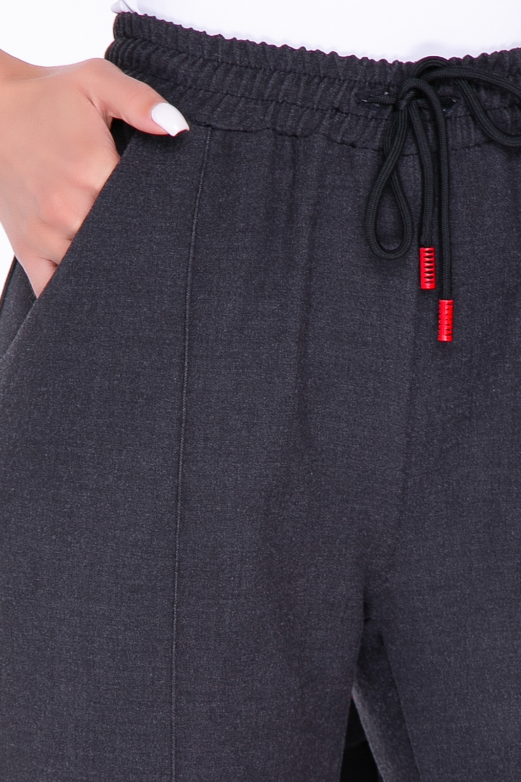 - Талия на резинке, регулируется кулиской, что делает посадку максимально комфортной, наконечники красного цвета добавляют образу цвета и стиля;