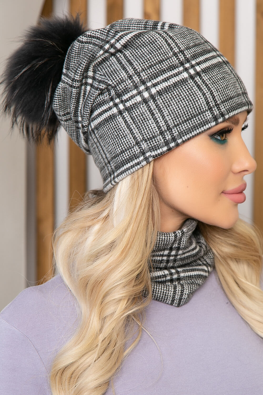 Комплект шапка с помпоном и снуд ШПС1 (клетка)