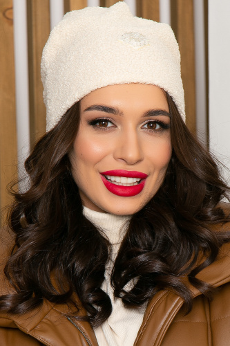 Шапка-шестиклинка с декором (молочная) ШШДя1