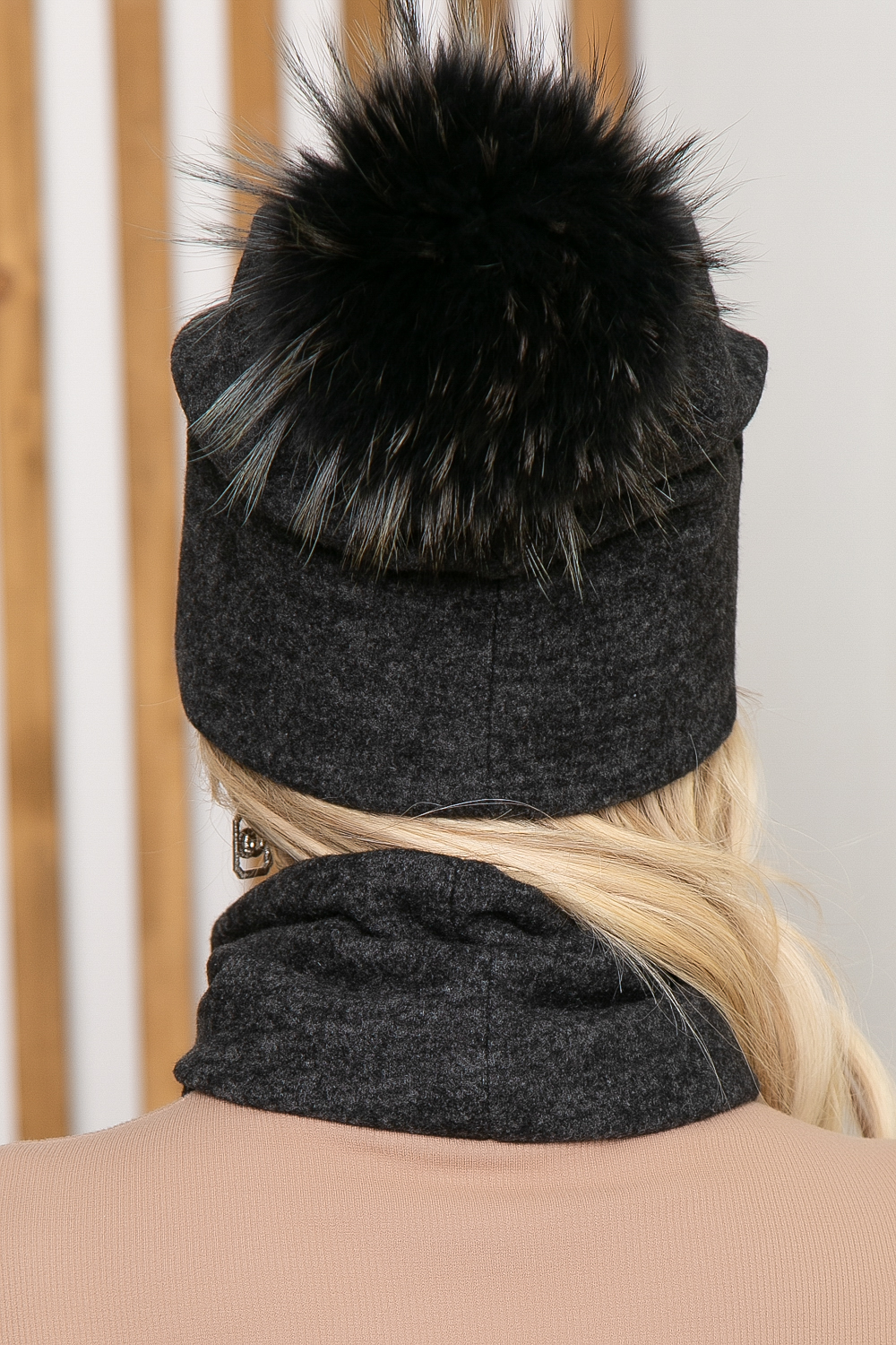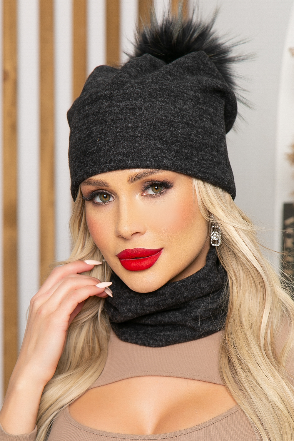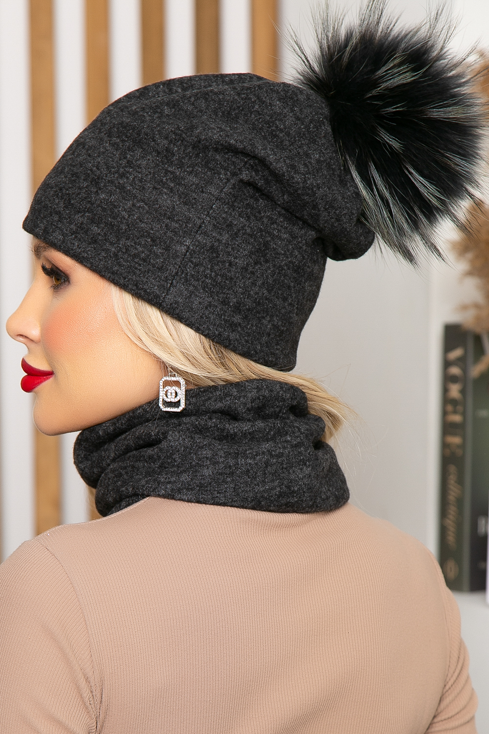 Комплект шапка с помпоном и снуд (темно-серый) ШПС3