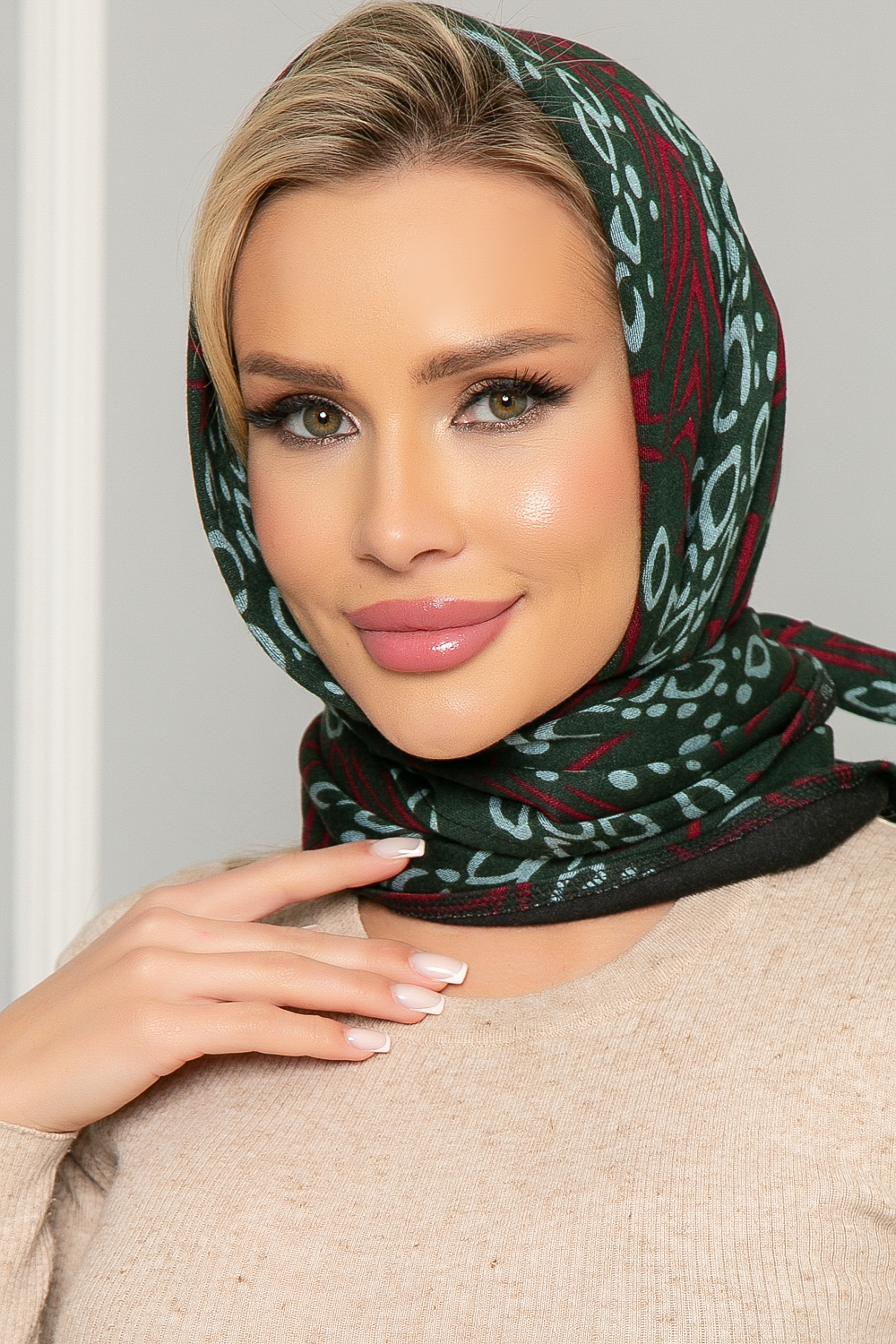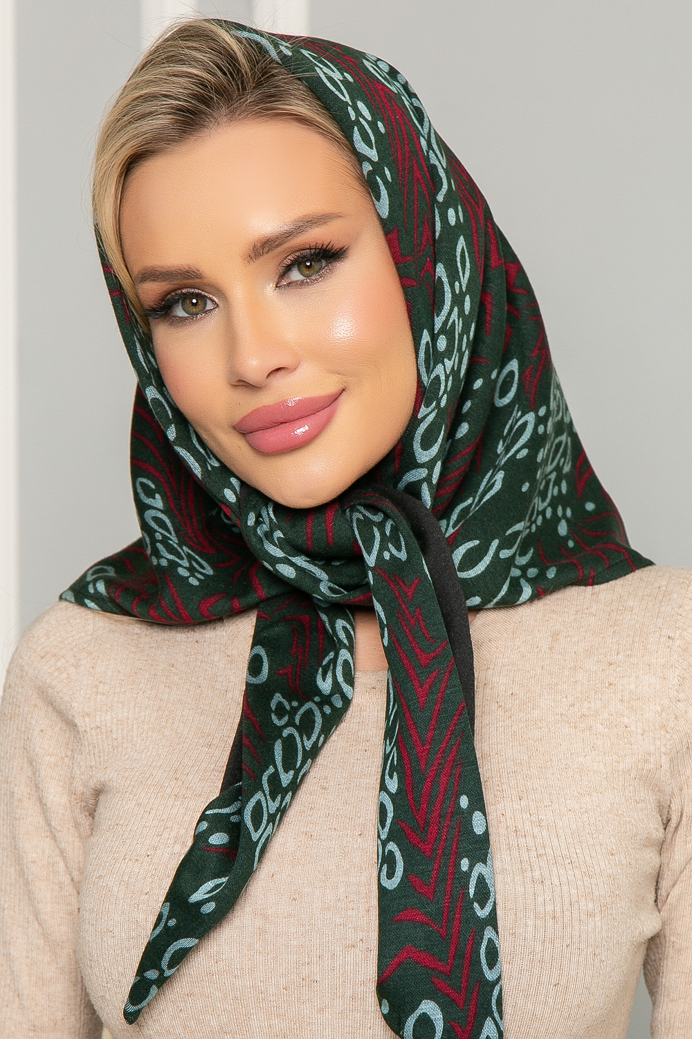 Косынка с подворотом (орнамент грин) КП04