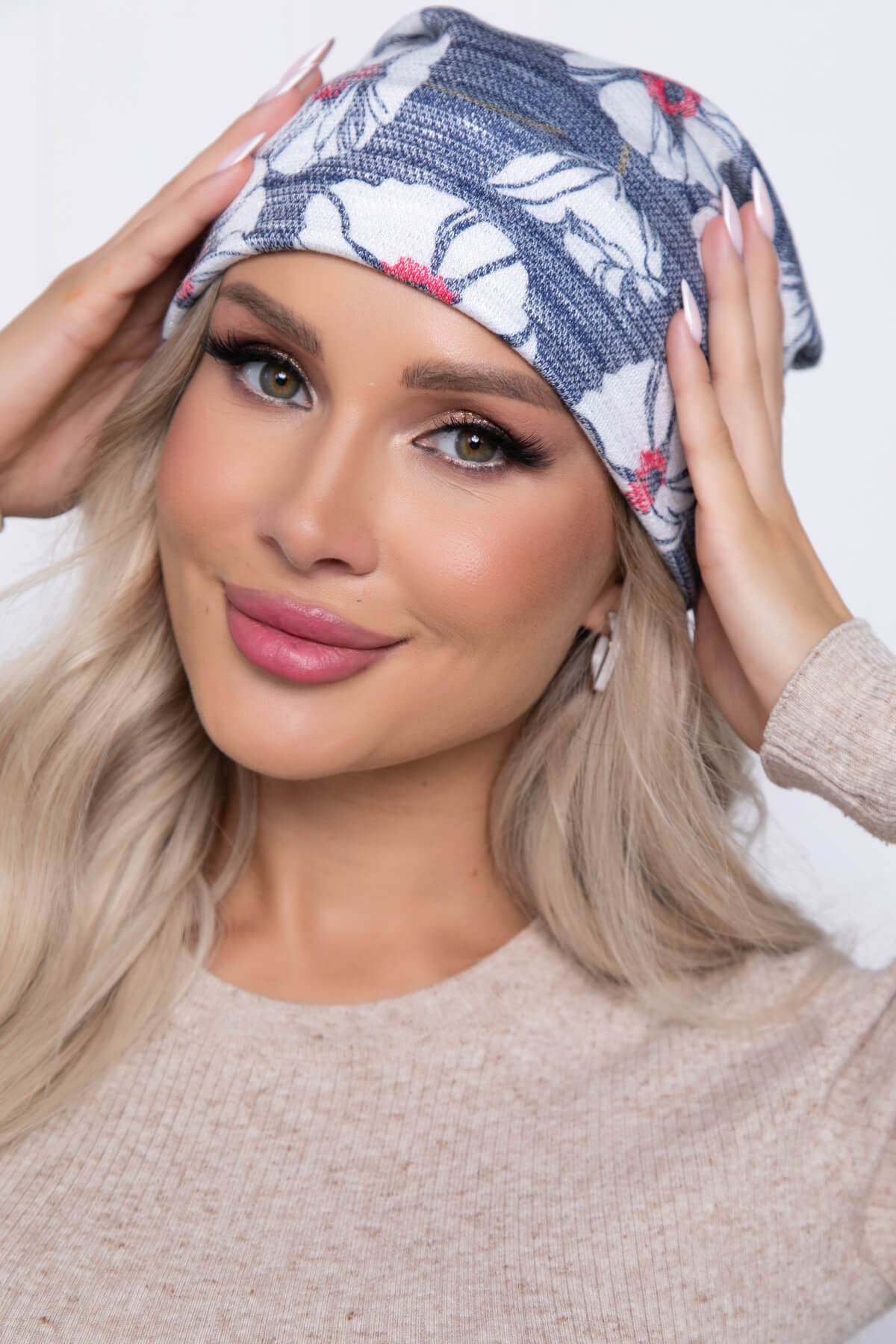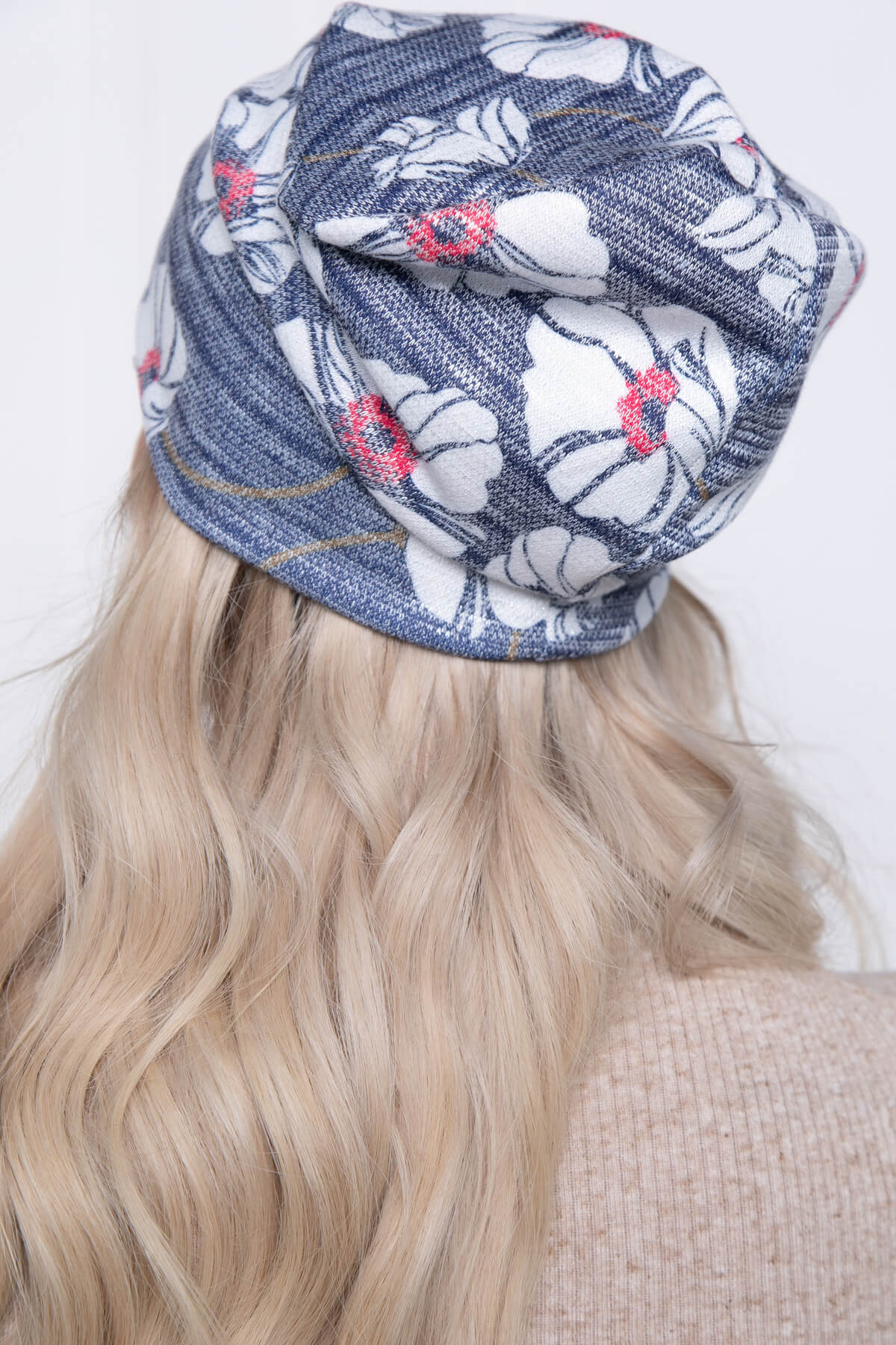 Шапка (цветы/синяя) Ш09