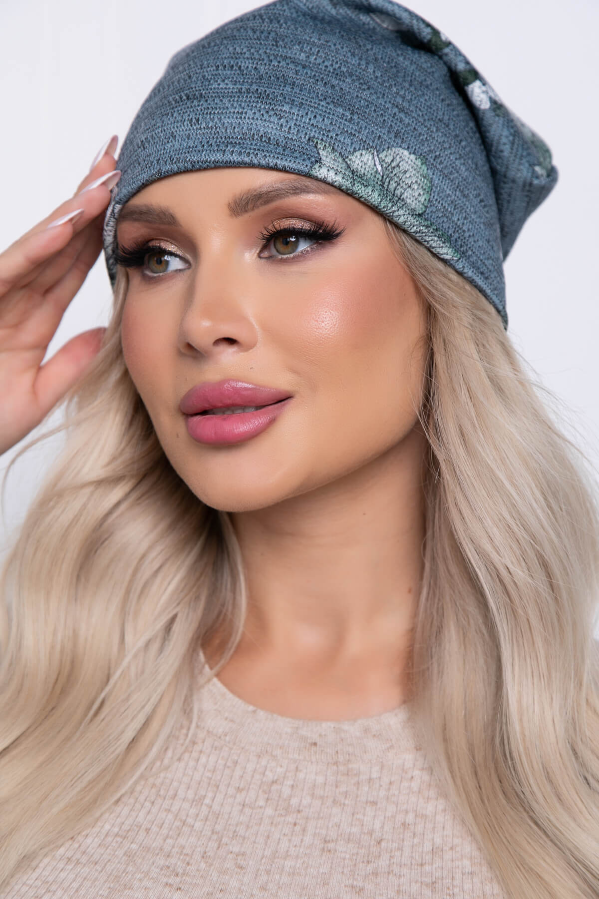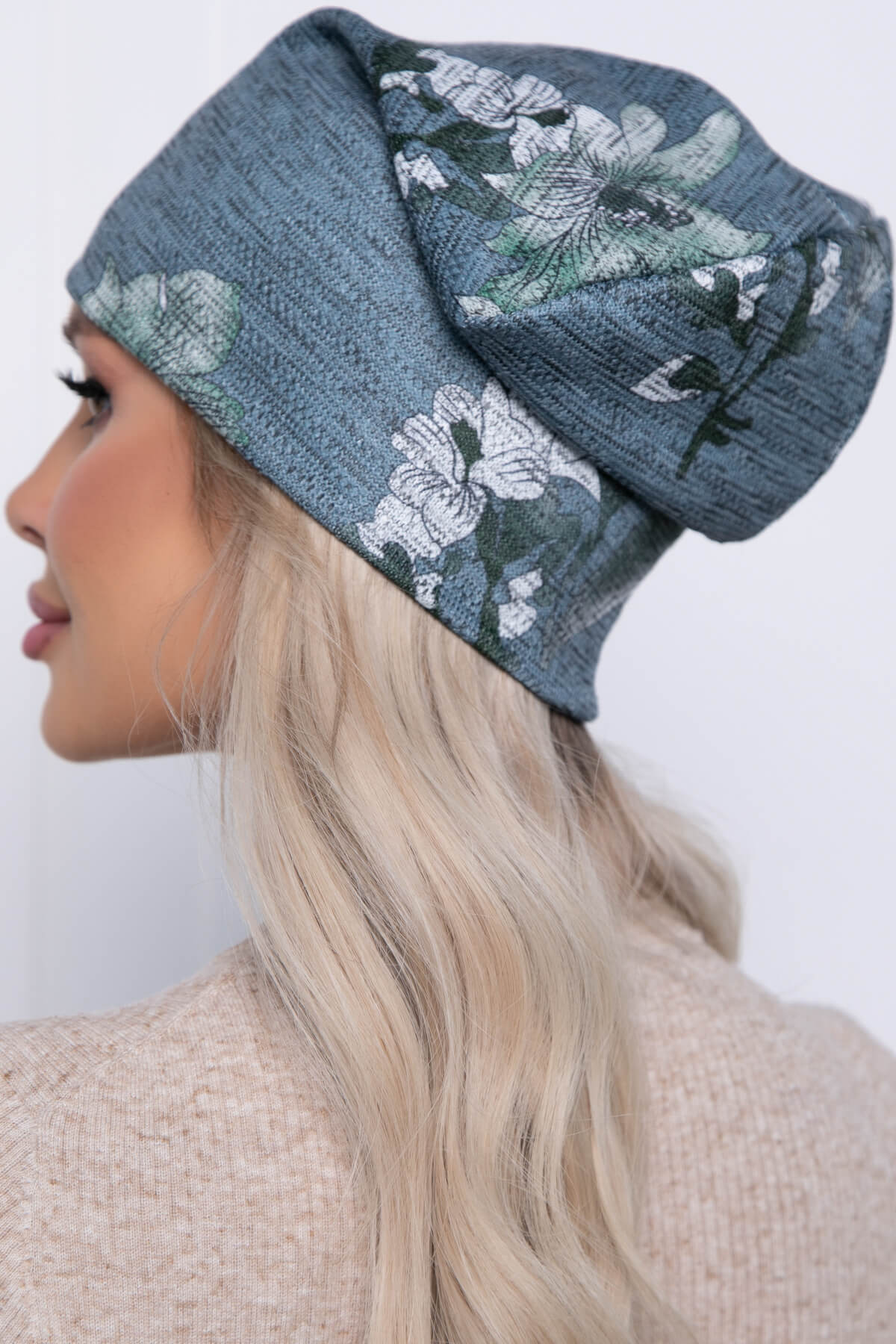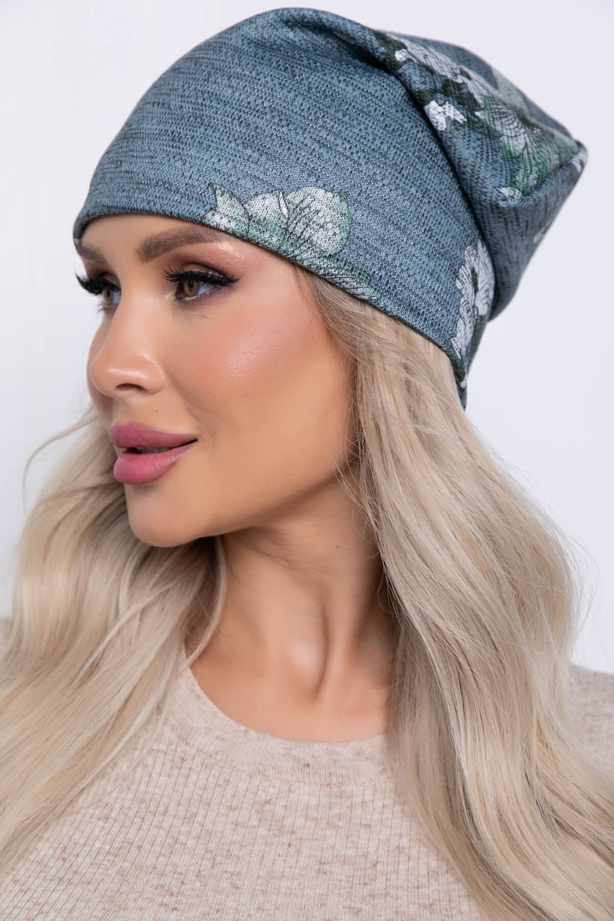 Шапка (цветы/зеленая) Ш10