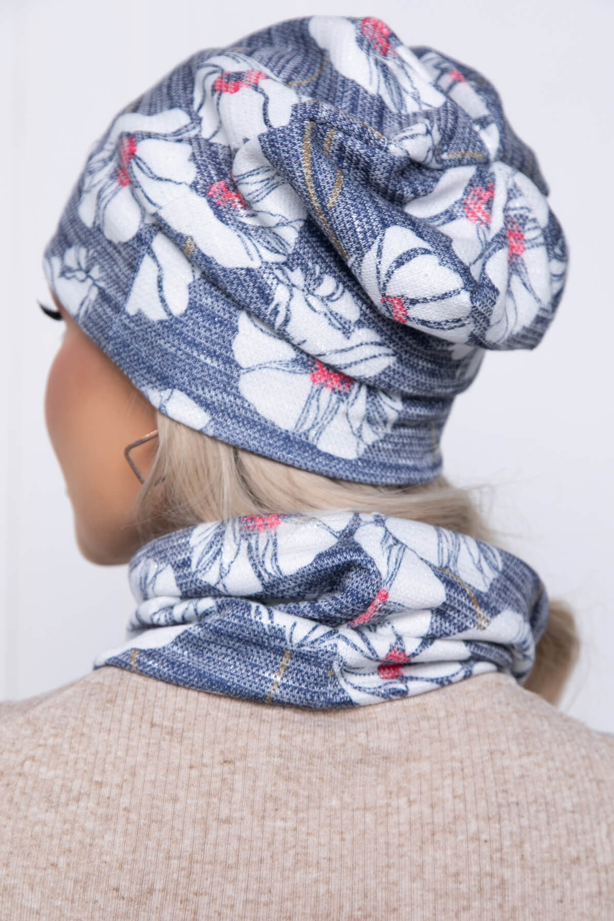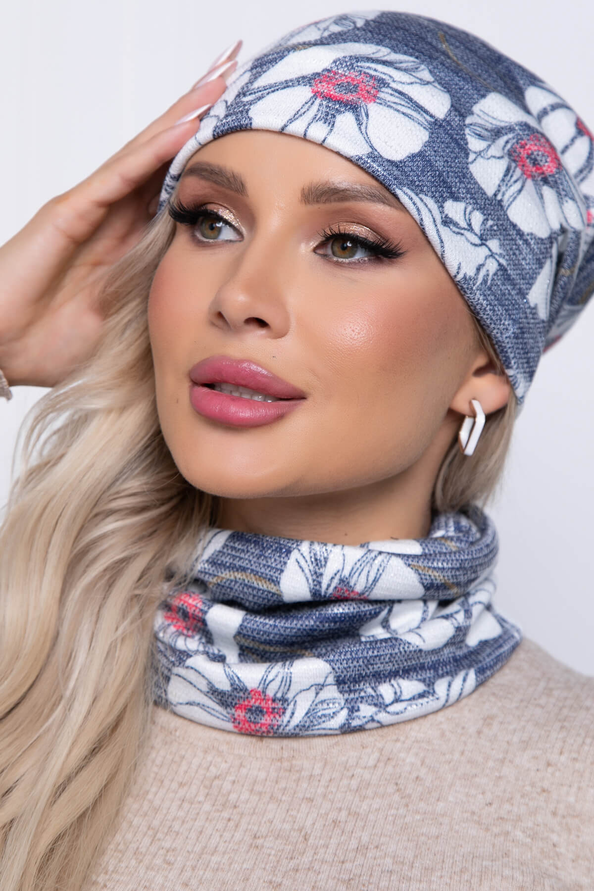 Стильный комплект из тонкого трикотажа подойдет для прохладной погоды. Шапка имеет универсальную форму и подходит для любой формы лица. Можно носить с отгибкой и без. Однослойный снуд позволит защитить шею от ветра.