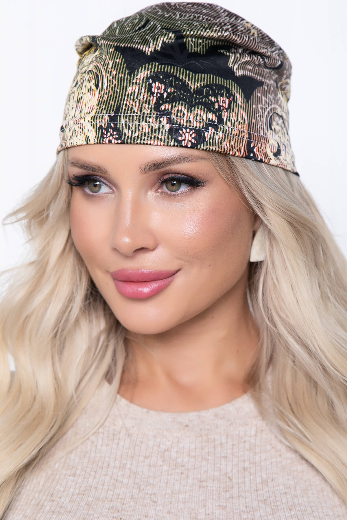 Шапка-шестиклинка (браун/принт) ШШЛ03
