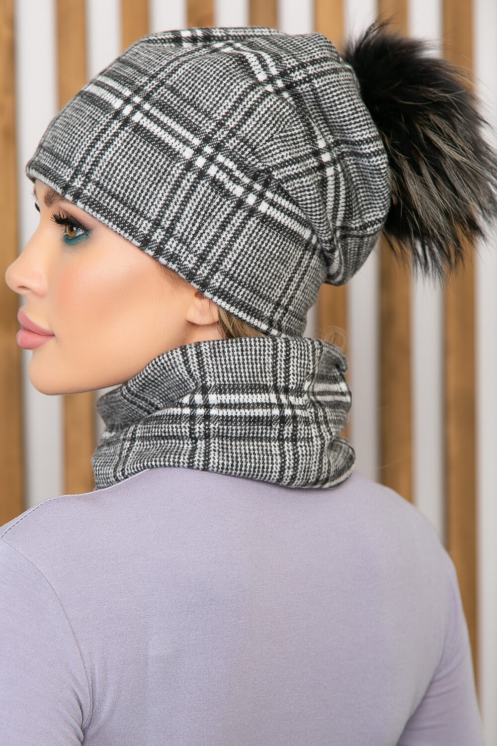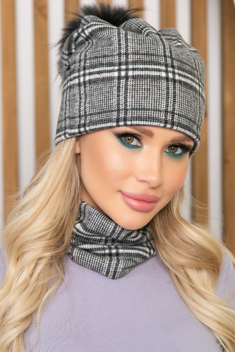 Комплект шапка и снуд (клетка) ШПС8