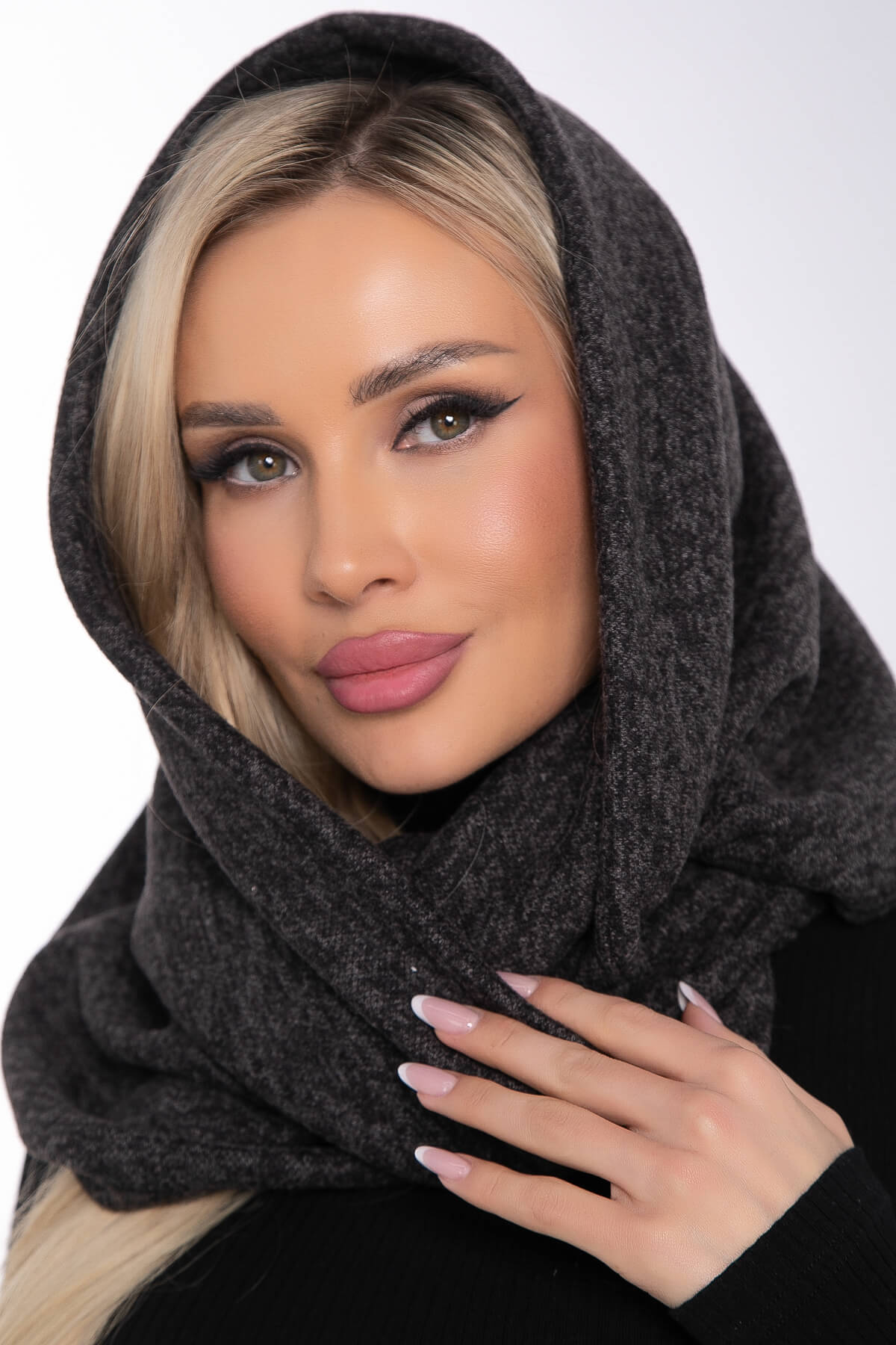 Трикотажный снуд легко драпируется в два оборота. Является альтернативой шапкам и капюшонам. Интересный оттенок снуда позволяет сочетать его практически с любым цветом верхней одежды.