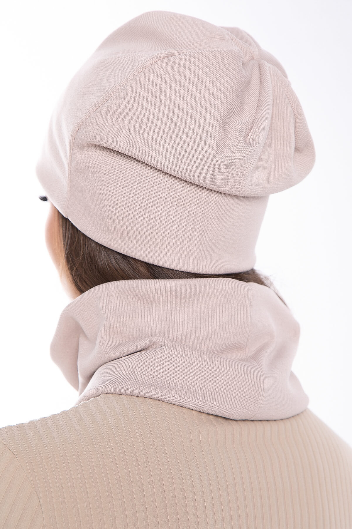 Мягкий трикотажный комплект, состоящий из шапки и снуда. Снуд позволит защитить шею от ветра. Приятный цвет комплекта придаст образу нежности. Отлично сочетается практически с любым вариантом верхней одежды. Шапка прекрасно прилегает к голове, не сдавливая её.