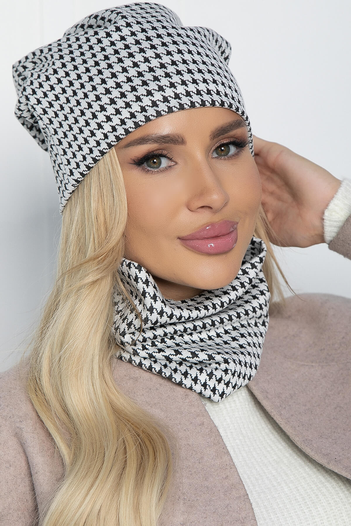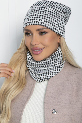 Комплект шапка-снуд - идеальное решение для холодного времени года, очень практичный и удобный. Шапка-колпак имеет комфортную посадку, а двойной снуд плотно закрывает шею защищая от холода и ветра.