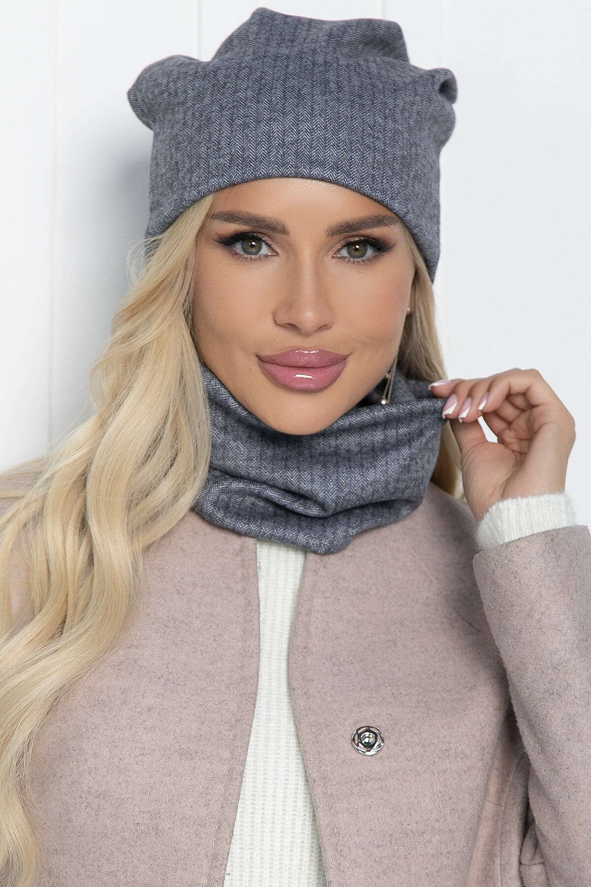 Комплект шапка-снуд - идеальное решение для холодного времени года, очень практичный и удобный. Шапка-колпак имеет комфортную посадку, а двойной снуд плотно закрывает шею защищая от холода и ветра.