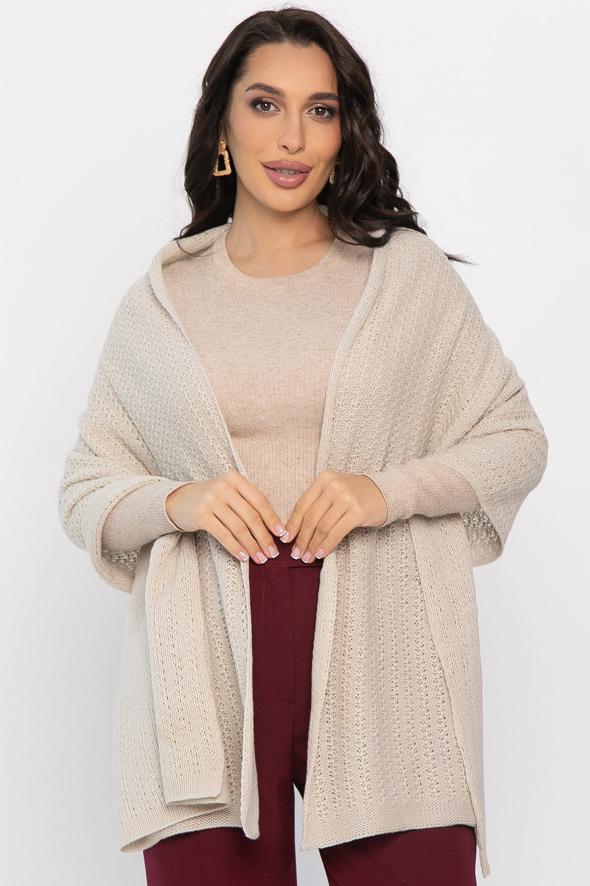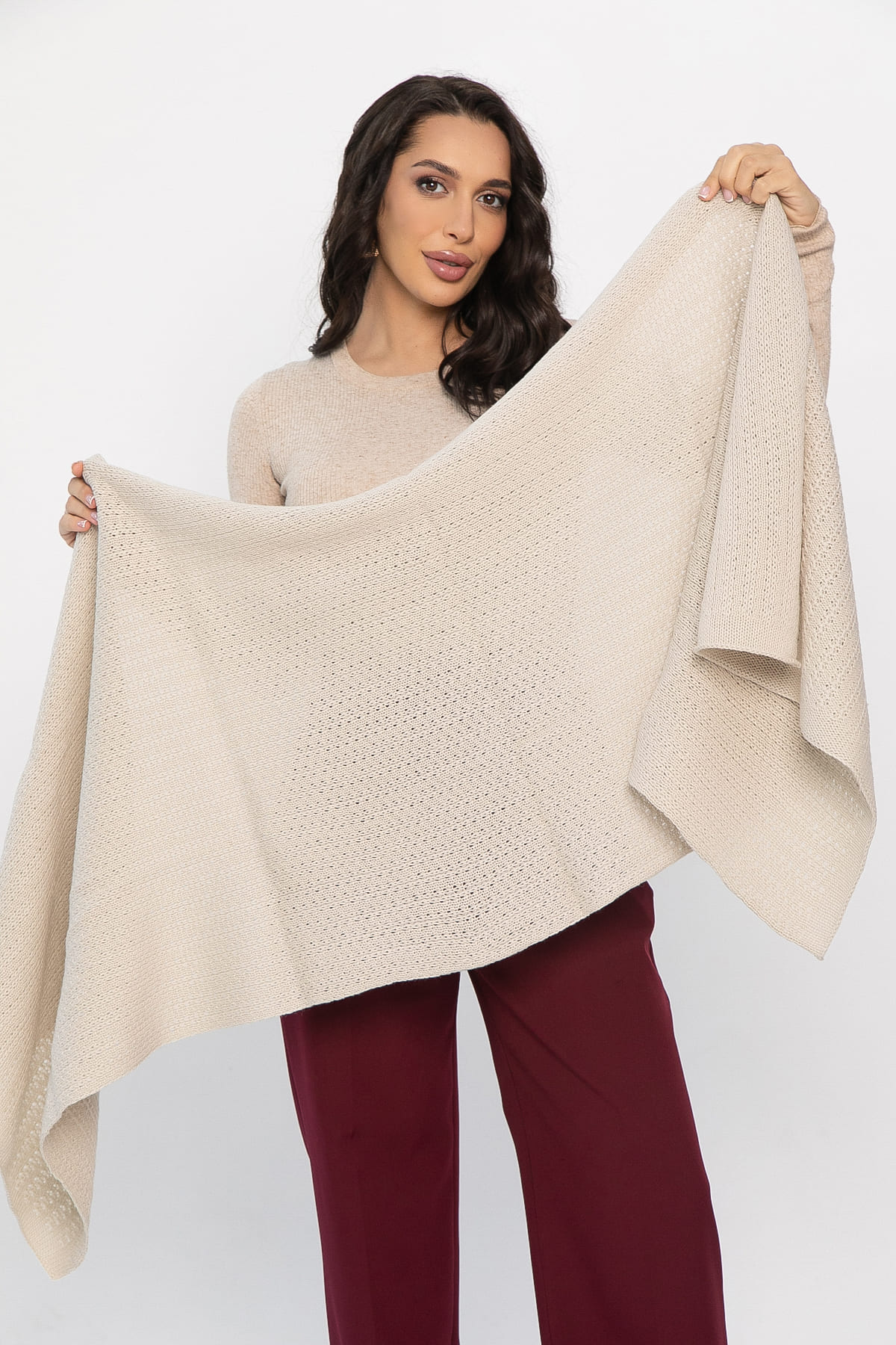 Стильный аксессуар, способный вдохнуть новую жизнь в ваш осенне-зимний гардероб. Вязаный материал обеспечит комфорт и уют в прохладную погоду, а нежный молочный оттенок гармонично впишется практически в любой образ. Палантин можно носить на шее, на голове или как накидку. Создавайте уникальные комбинации, экспериментируйте с образом и наслаждайтесь теплом и стилем!