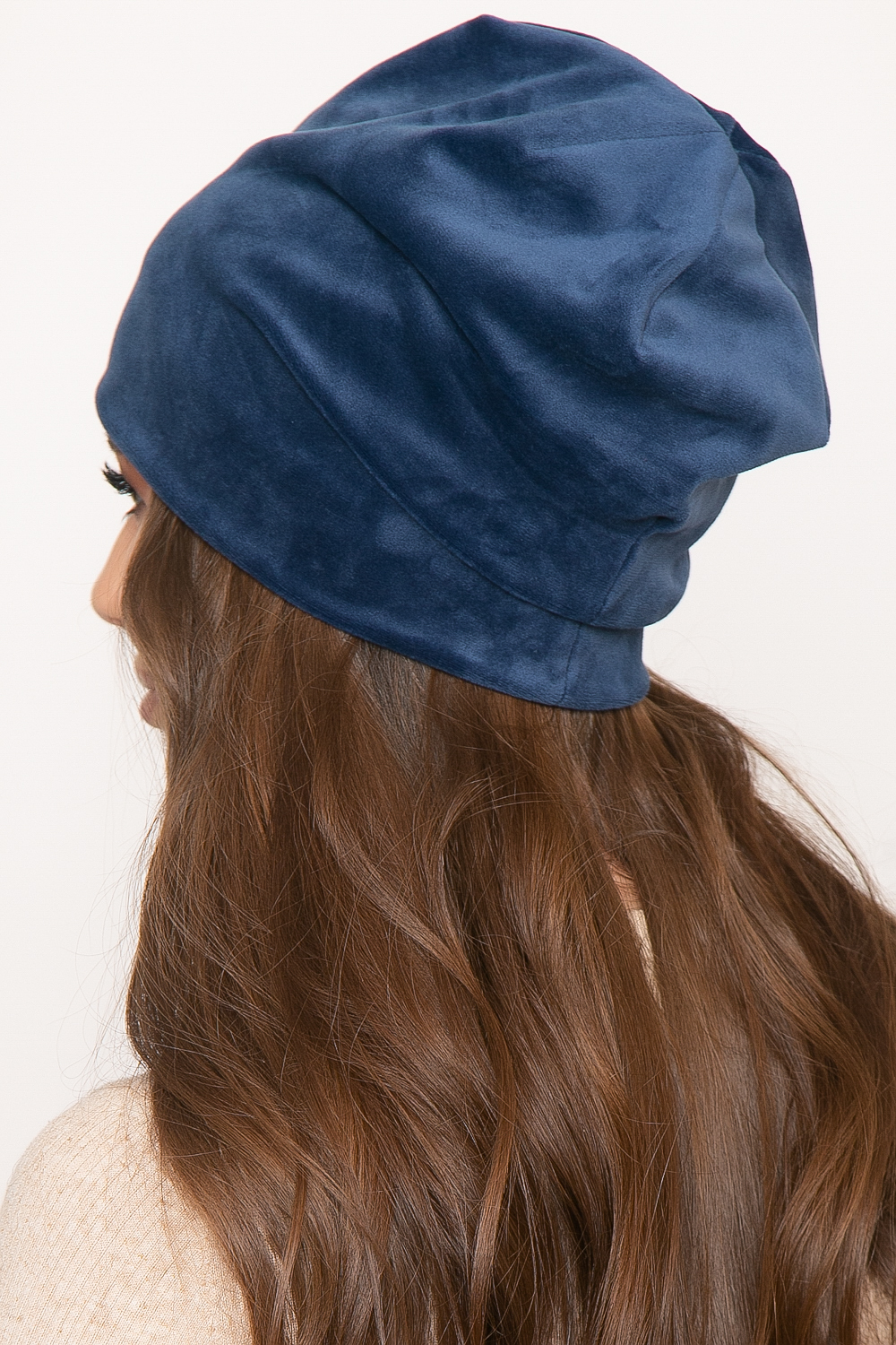 Стильная шапка из велюра согреет Вас в прохладный период. Шапка плотно облегает голову, не сдавливая её.