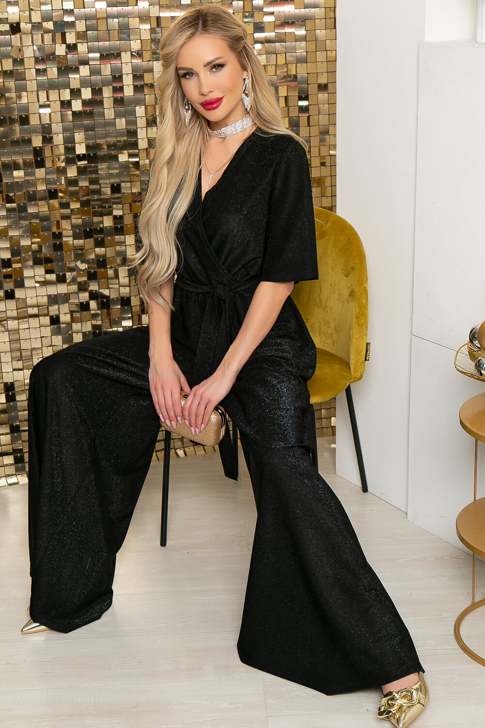 Шикарный комбинезон для создания неповторимого вечернего образа. Невероятно красивый верх, скроенный с имитацией запаха, имеет втачной укороченный расклешённый рукав. Широкие летящие брюки, безусловно, являются акцентной деталью образа. В комплект входит пояс из основной ткани, который позволяет дополнительно подчеркнуть талию.