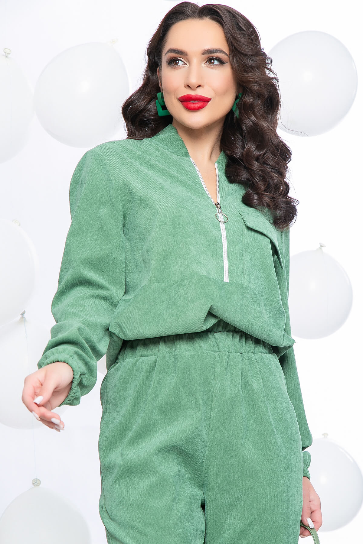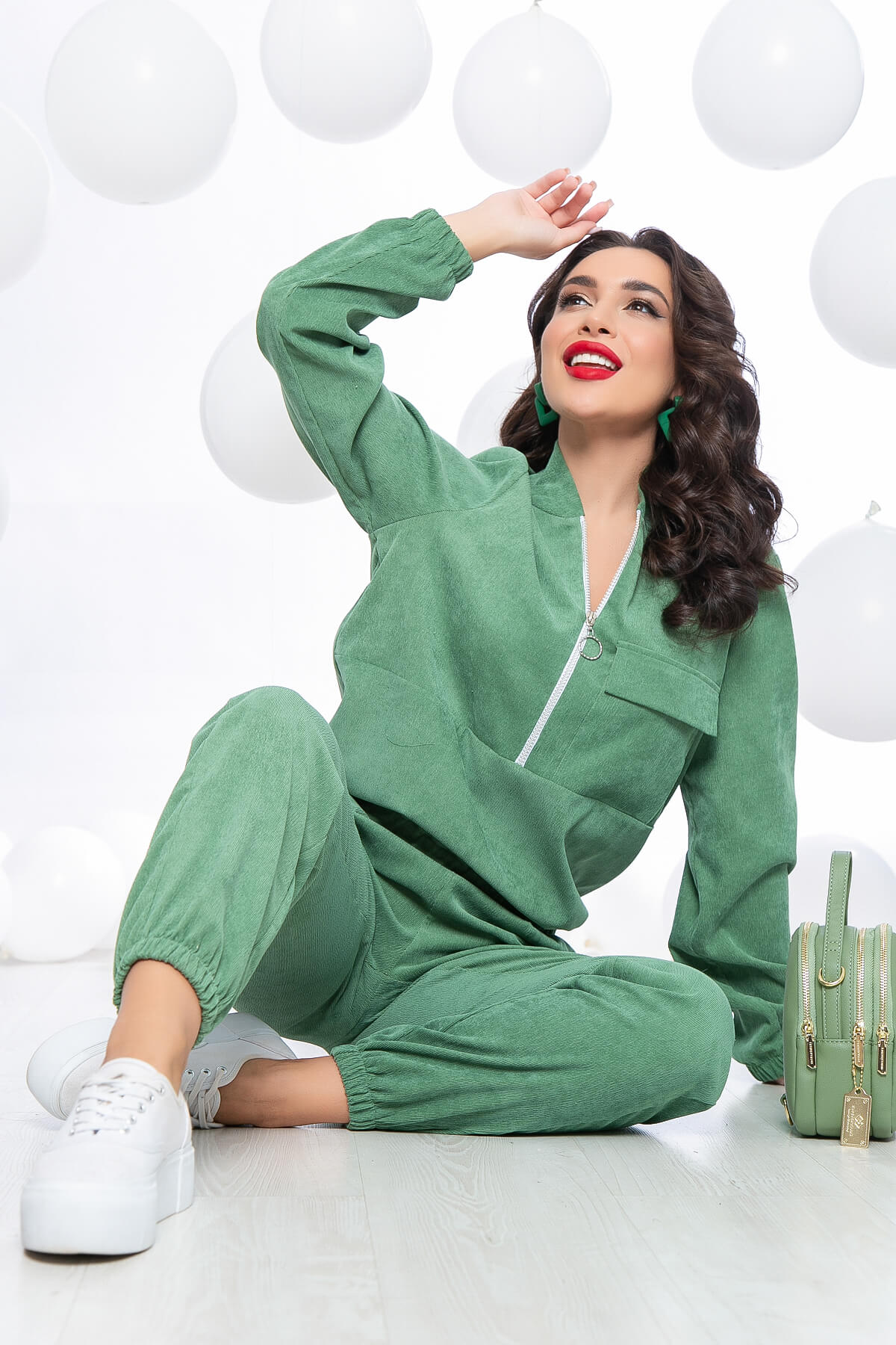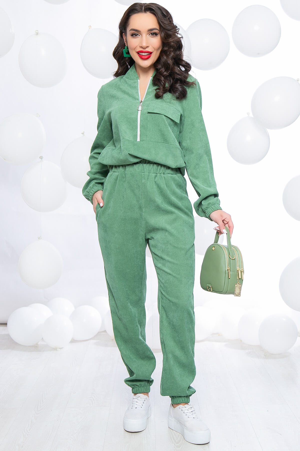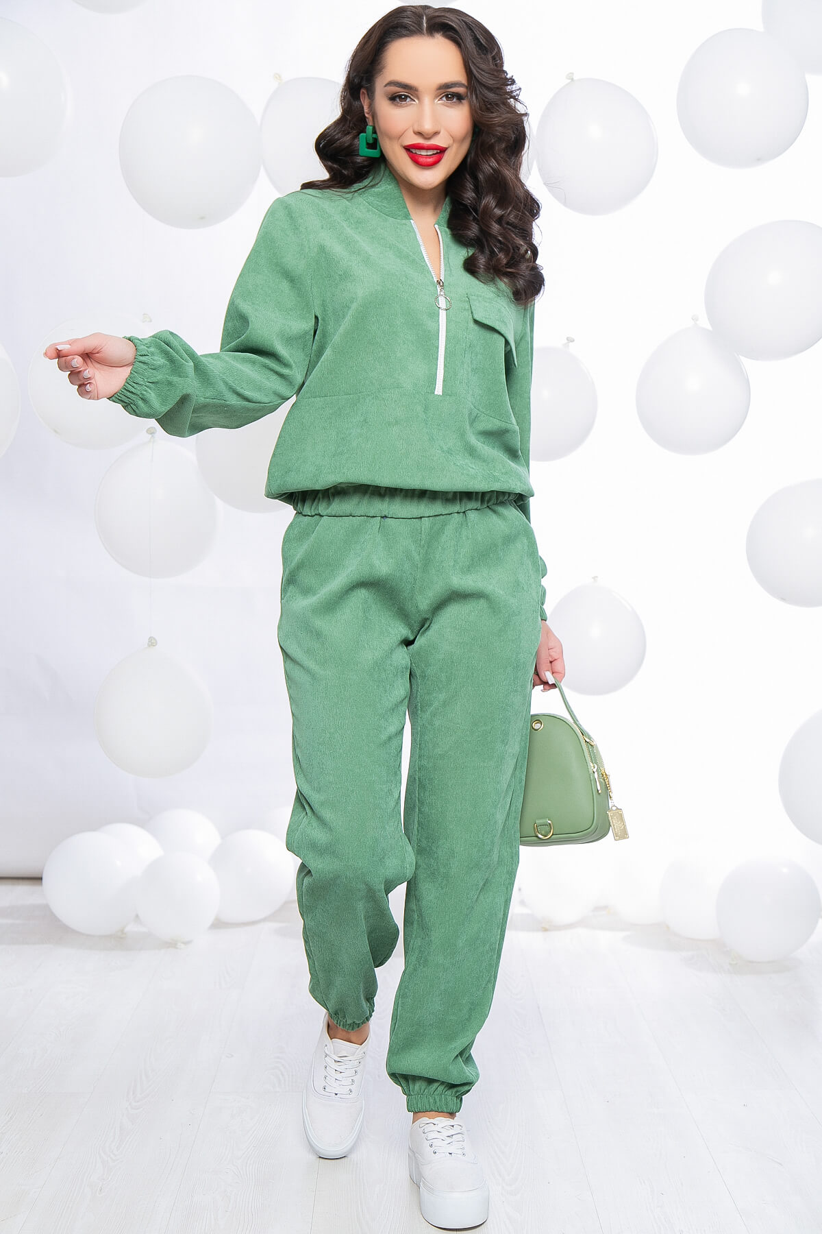 Стильный комплект станет любимой вещью в гардеробе! Костюм состоит из двух предметов: комфортных джоггеров и бомбера. Бомбер резной ниже груди, на молнии, с воротником стойкой. Слева на груди карман с клапаном. Джоггеры с высокой посадкой, талия на широкой резинке, брюки на резинке. В боковых швах брюк есть карманы.