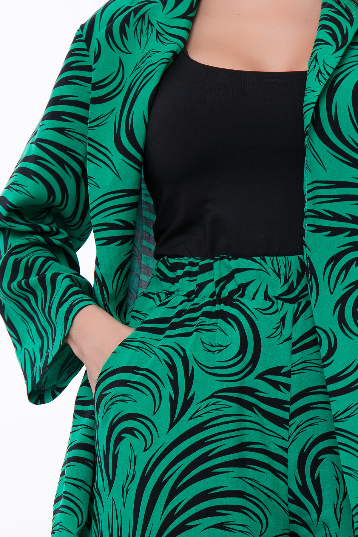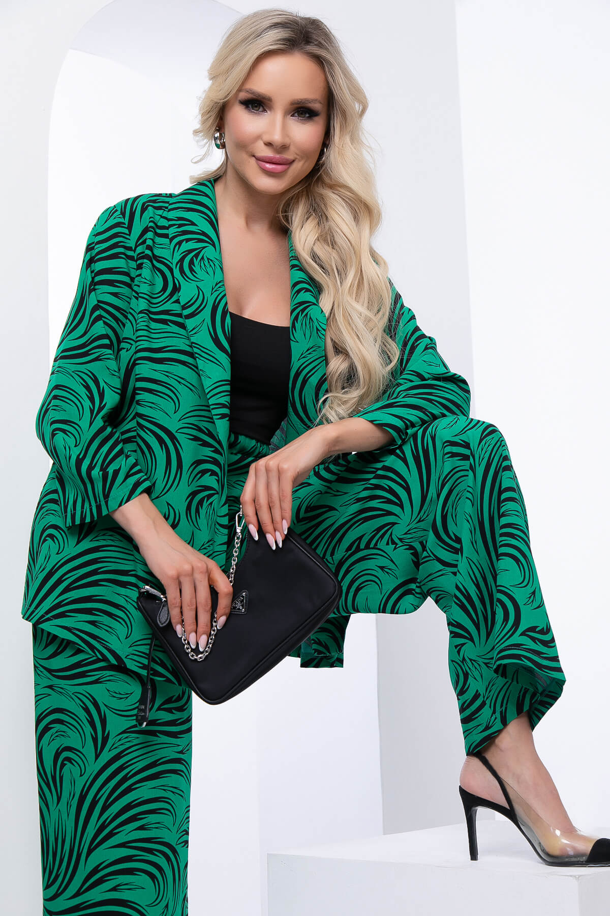 Костюм из лёгкой ткани идеально подойдёт для летнего расслабленного образа. Свободный крой не сковывает движений и дарит комфорт. Рукав три четверти, со спущенным плечевым швом.В комплект входит пояс из основной ткани, который позволит подчеркнуть преимущества фигуры.