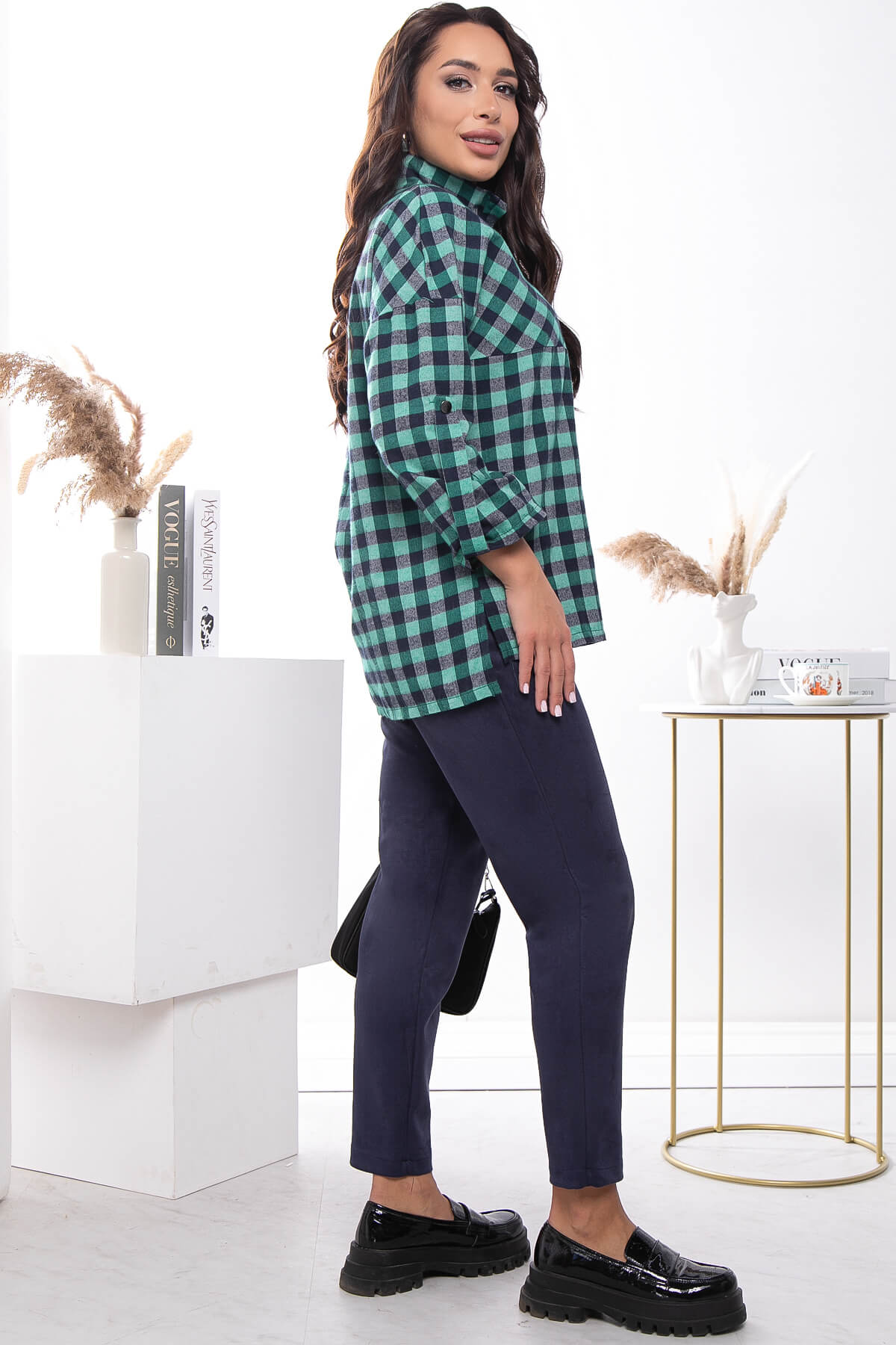 Костюм-двойка, состоящий из зауженных к низу брюк с высокой посадкой на резинке и рубашки свободного кроя. Преимущество комплекта в том, что Вы сможете самостоятельно носить как рубашку, так и брюки. Рубашка свободного кроя оснащена воротником стойкой на кнопках. Линия плеча спущена, рукав три четверти, по низу собран на декоративную пату. Костюм прекрасно подходит для создания комфортного повседневного образа и хорошо смотрится в сочетании с кедами, ботинками и лоферами.