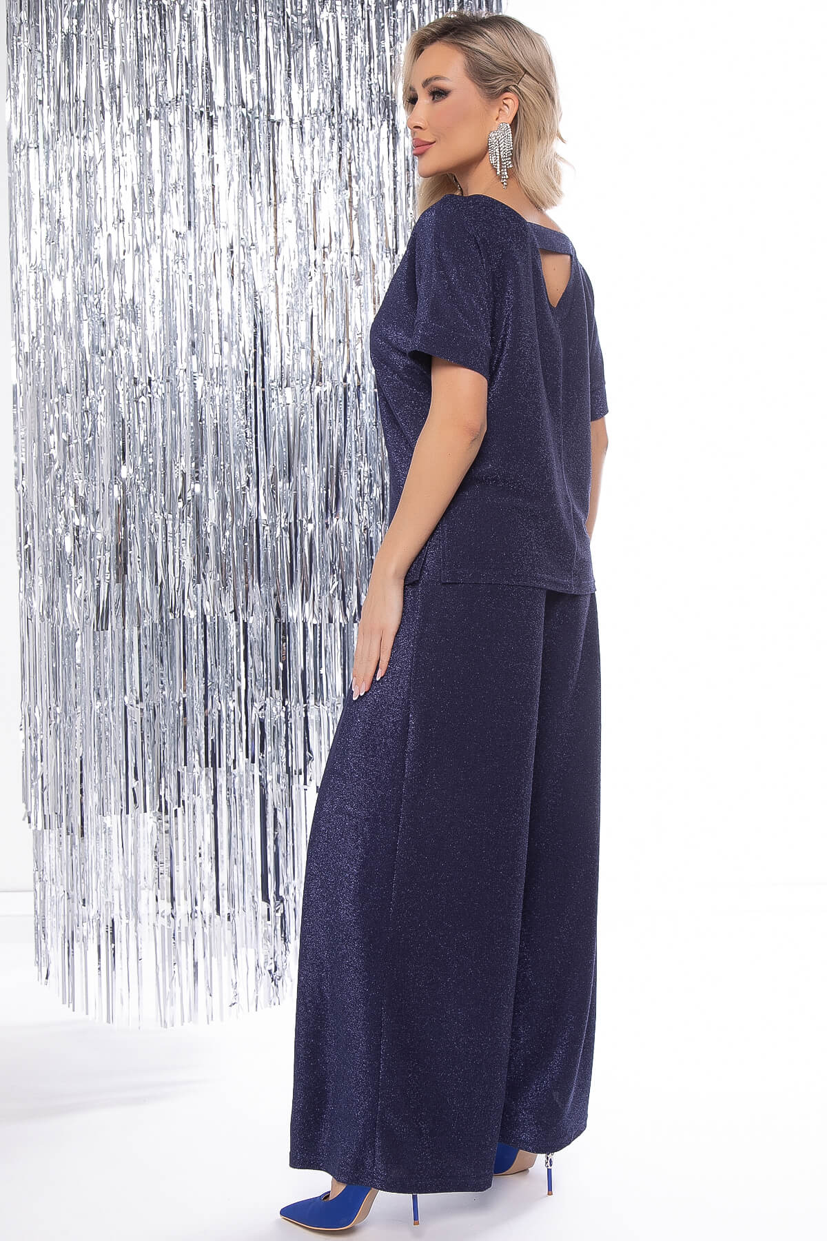 Среди всех модных изделий настоящая модница старается отдать предпочтение наиболее практичной.Такая вещь должна быть и красивой, и удобной, и уместной в самых разных ситуациях. Роскошный легкий костюм с мерцанием - это отличное решение на любой праздник! Шикарные брючки с высокой посадкой не просто идеально смотрятся на фигуре, но и создают полное ощущение комфорта благодаря своему крою и легкости материала.