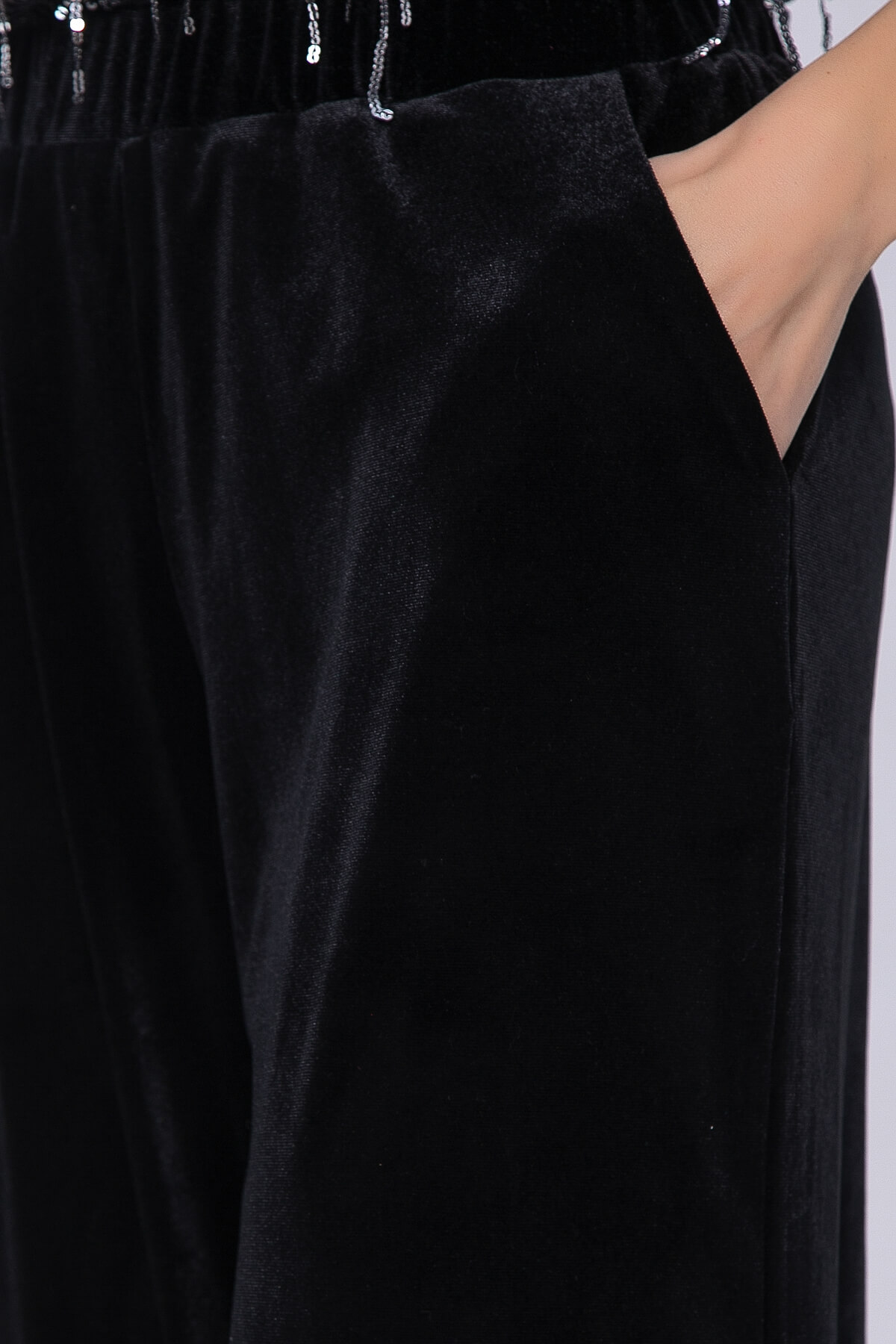 Роскошный бархатный костюм в стильном оттенке. Богемный лоск этой новинки просто сводит с ума! Шикарные брюки с высокой посадкой не просто идеально смотрятся на фигуре, но и создают полное ощущение комфорта благодаря своему крою и мягкости материала. Рукав втачной, три четверти. В комплект входит пояс из атласа.