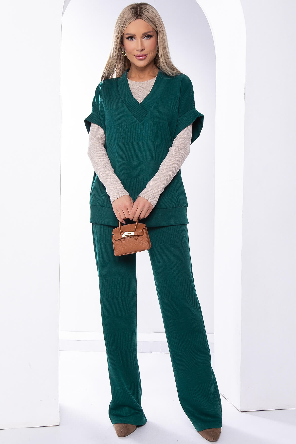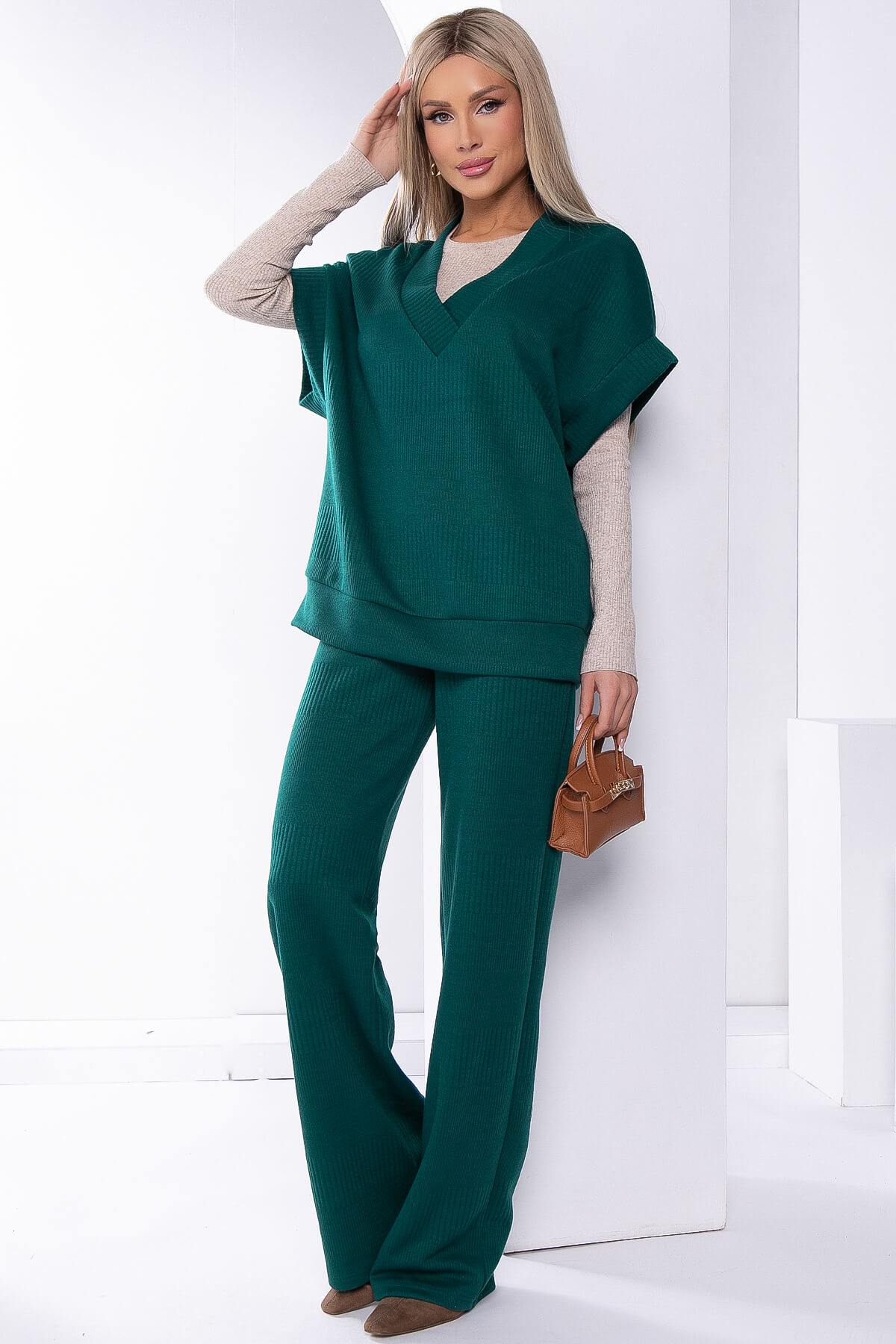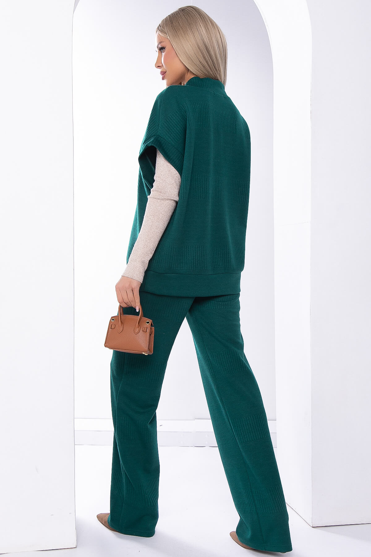 Костюм-двойка, состоящий из прямых брюк с высокой посадкой на резинке и жилета свободного кроя. Преимущество комплекта в том, что вы сможете самостоятельно носить как жакет, так и брюки. В повседневном образе смело сочетайте с лоферами или ботинками, а если нужен более официальный образ, с туфлями на каблуке.