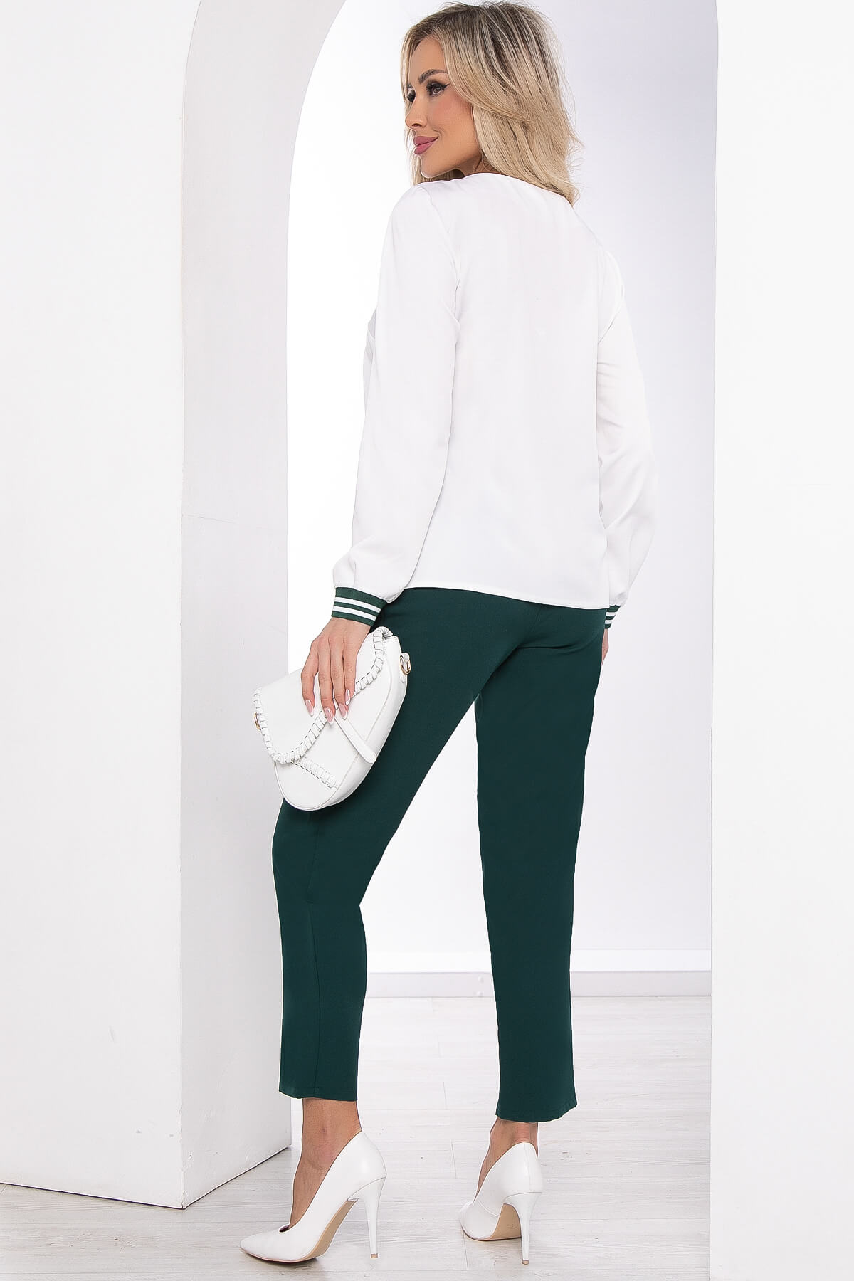 Стильный костюм-двойка, состоящий из зауженных брюк с высокой посадкой на резинке и блузы свободного кроя. Длинные рукава на блузе завершается красивыми эластичными манжетами в полоску. Преимущество комплекта в том, что вы сможете самостоятельно носить как блузу, так и брюки. В повседневном образе смело сочетайте с лоферами или ботинками, а если нужен более официальный образ, с туфлями на каблуке.