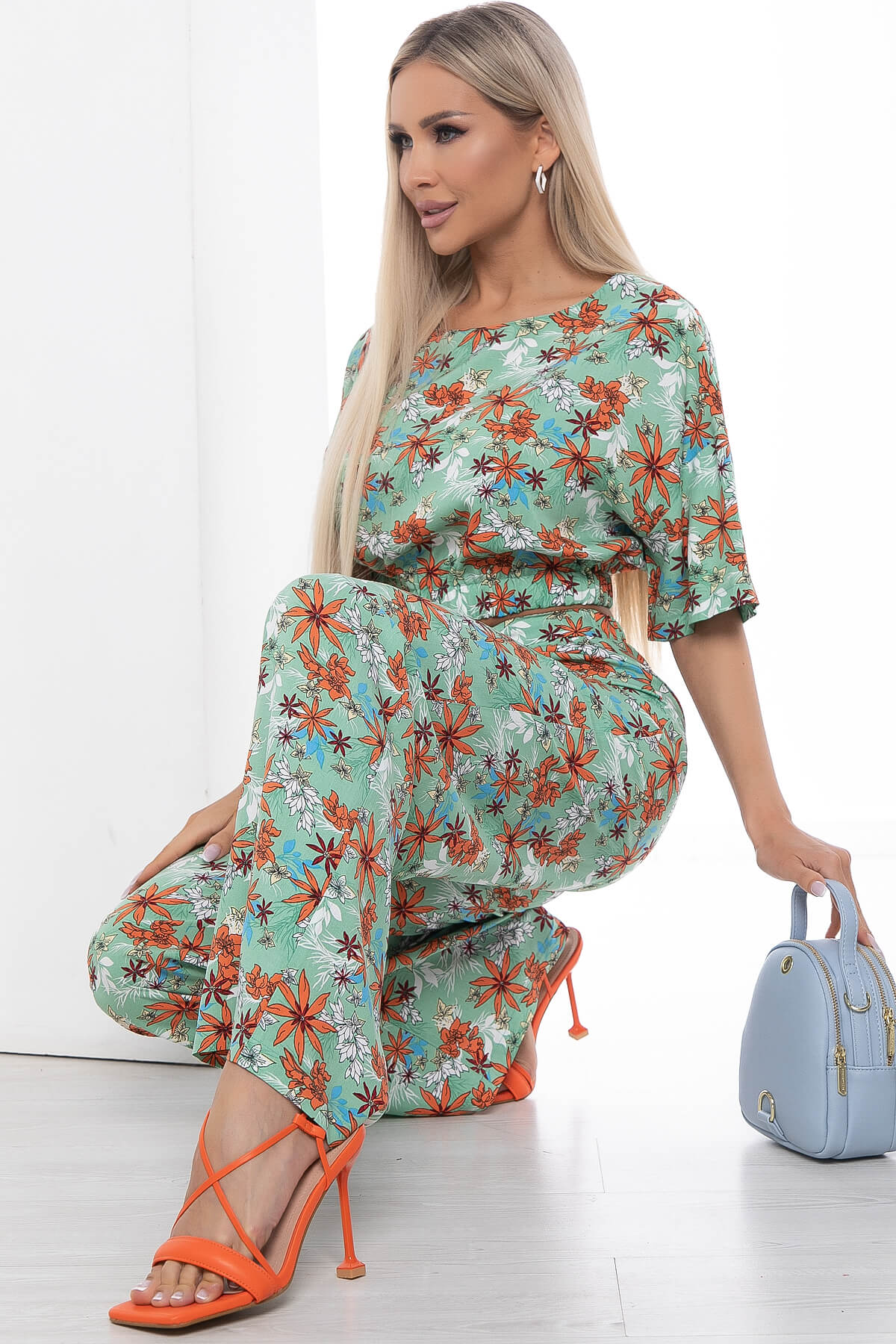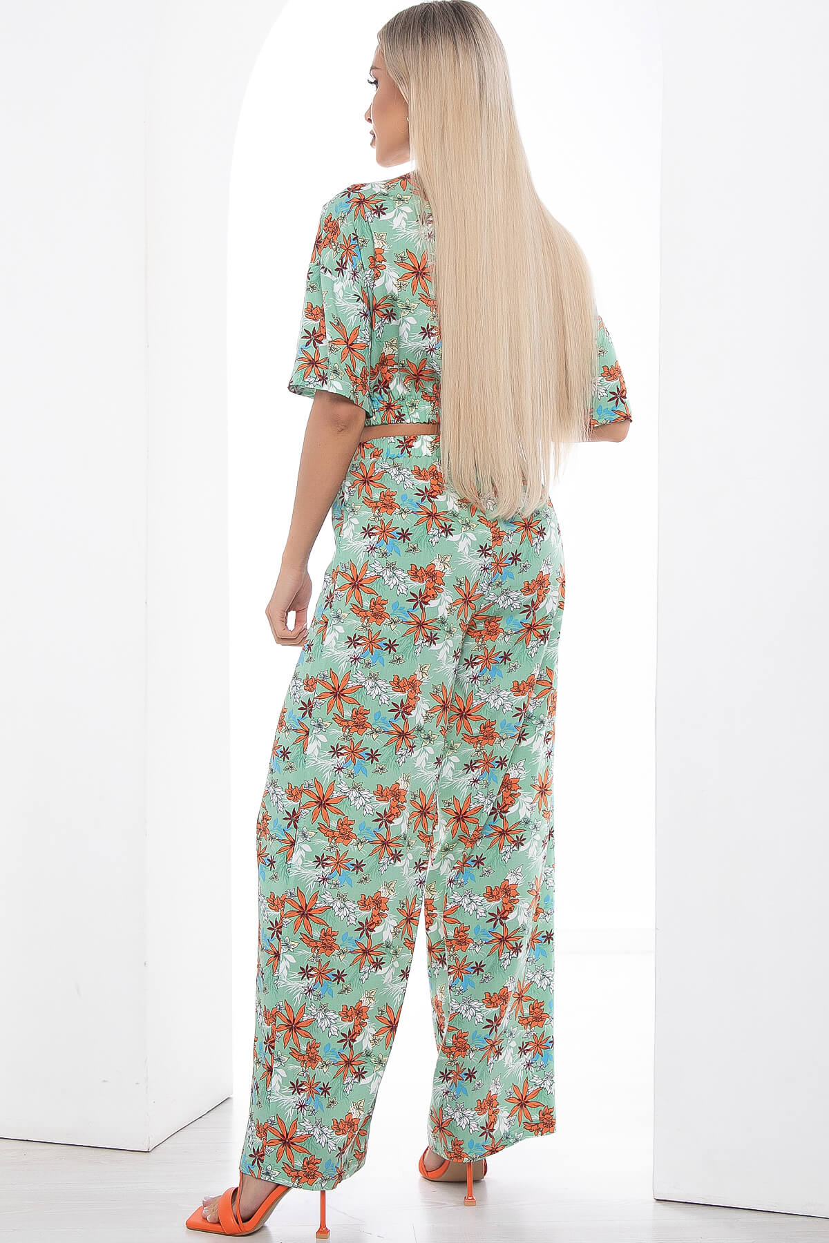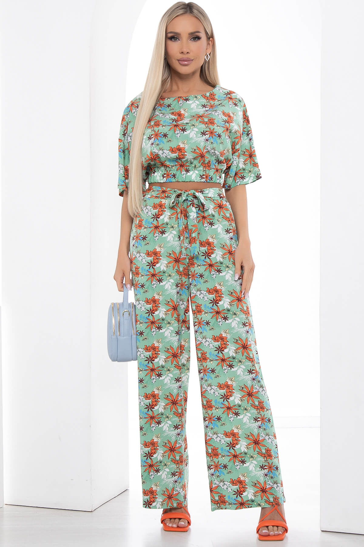 Костюм из лёгкой ткани идеально подойдёт для летнего расслабленного образа. Свободный крой не сковывает движений и дарит комфорт. Брюки прямого кроя, пояс с резиной завязывающийся спереди на бант.