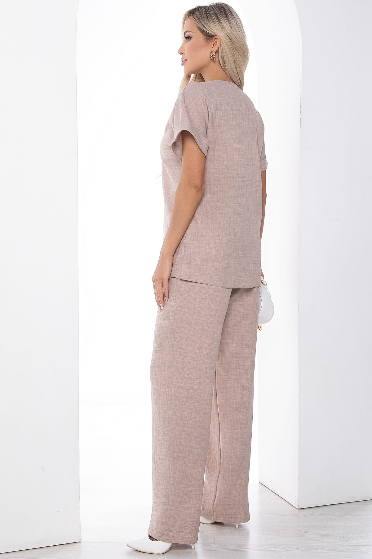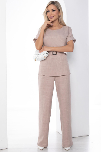 Костюм из лёгкой ткани не сковывает движения, очень удобный и дарит ощущение лёгкости в жаркую погоду. Идеально подходит для создания офисных образов и повседневных летних прогулок. В комплекте пояс из основной ткани с пряжкой. Костюм без подкладки. Брюки на резинке, есть карманы в боковых швах.