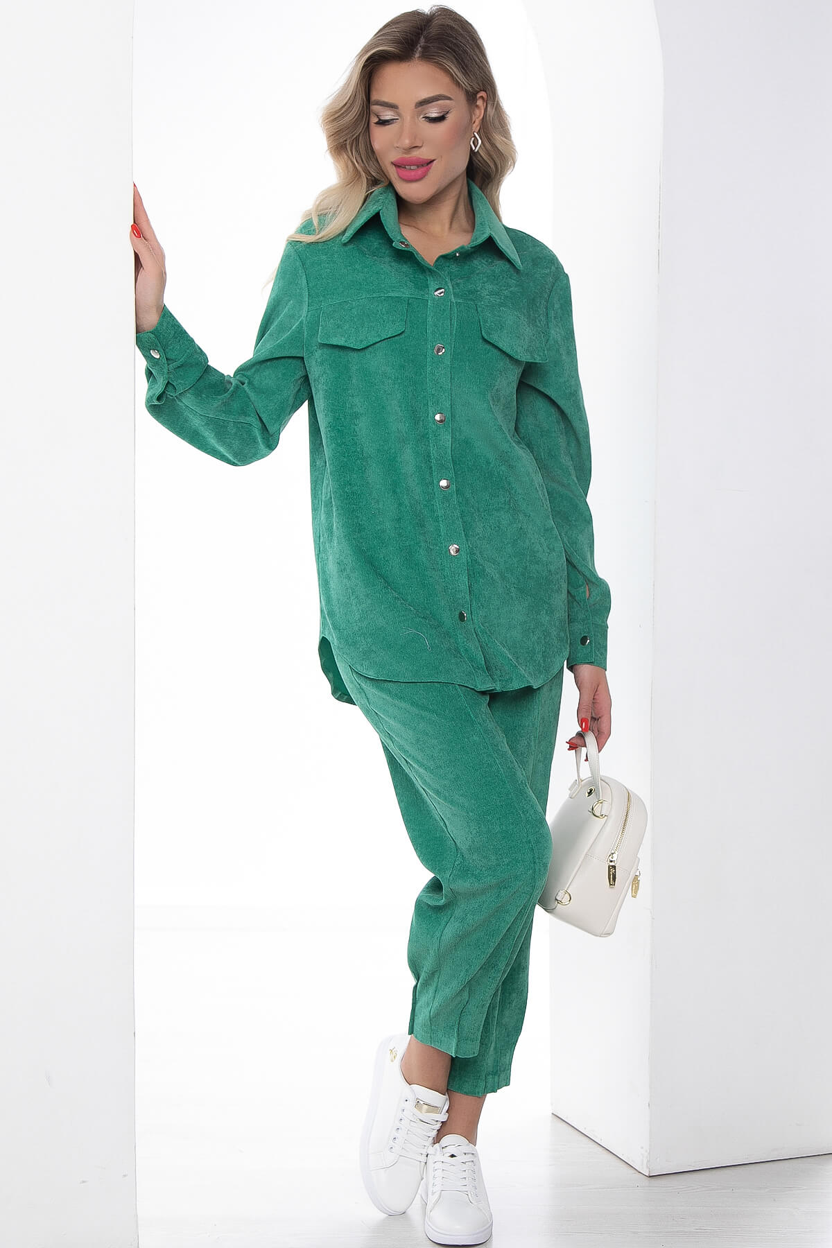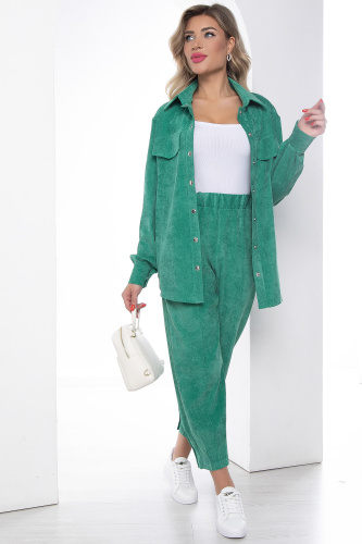 Стильный комплект станет вашей любой вещью в гардеробе! Костюм из двух предметов: комфортных брюк и рубашки. Рубашка из микровельвета в стиле оверсайз - абсолютно незаменимая вещь. С её помощь можно создавать большое количество образов и чувствовать себя комфортно. Рубашка застёгивается на кнопки, рукав втачной, длинный, на мажете. Брюки с высокой посадкой, талия на широкой резинке. В боковых швах есть карманы. Такой костюм идеален для создания повседневного образа современной девушки. По низу брюки декорированы защипами.