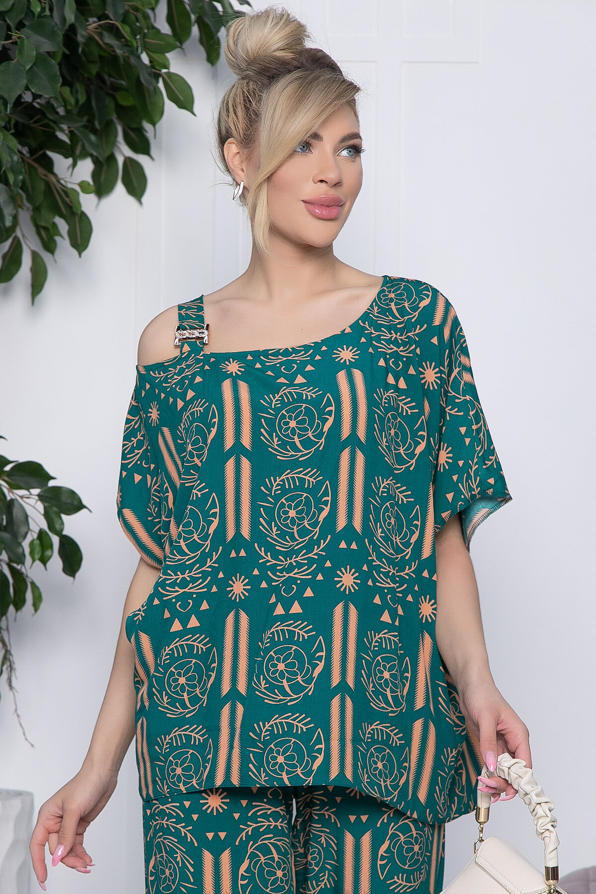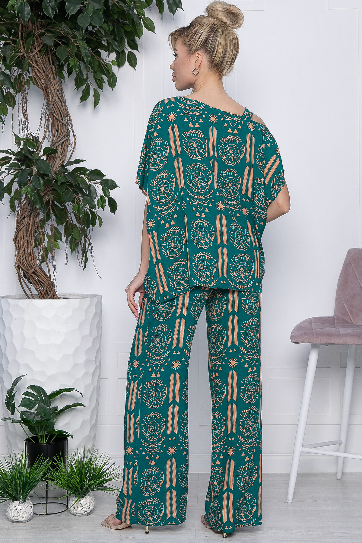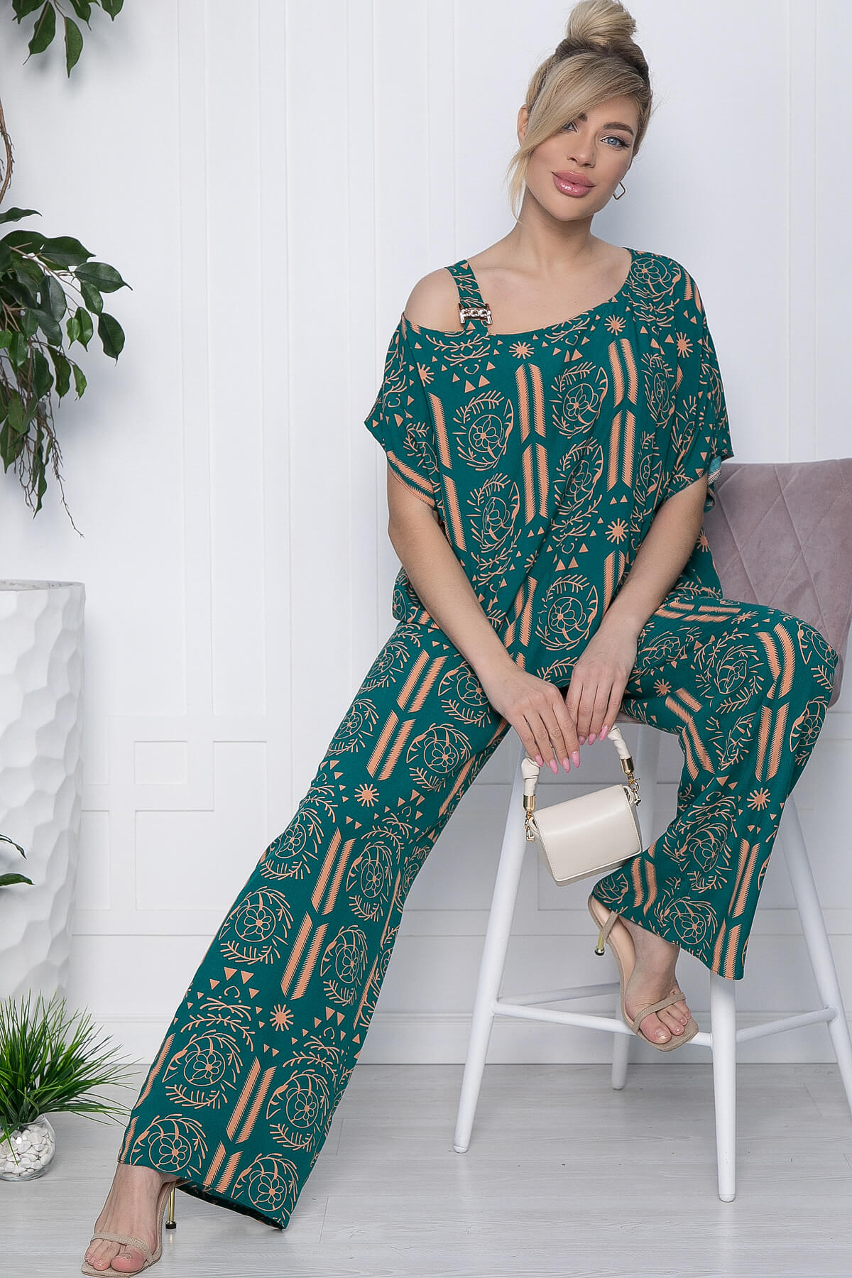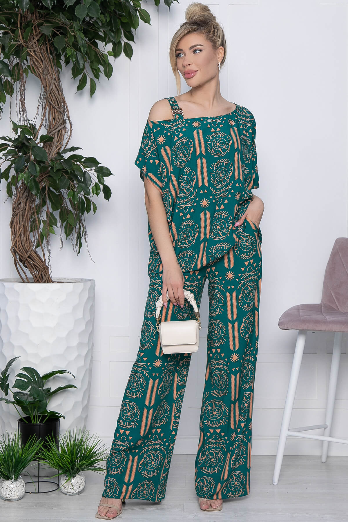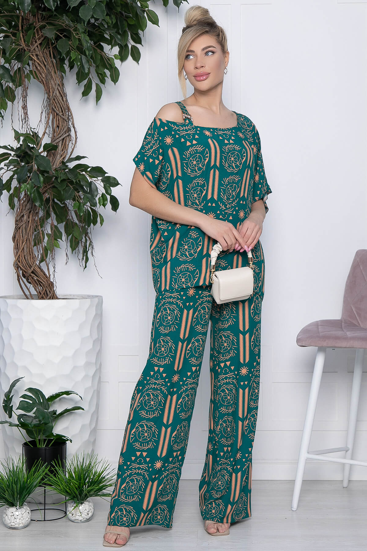 Легкий и одновременно изысканный, этот комплект отлично подойдет для повседневного ношения и отдыха на море. Костюм можно носить с каблуком и плоским ходом. Сочетание двух оттенков и необычный принт создает уникальный образ, который точно будет привлекать восхищенные взгляды.