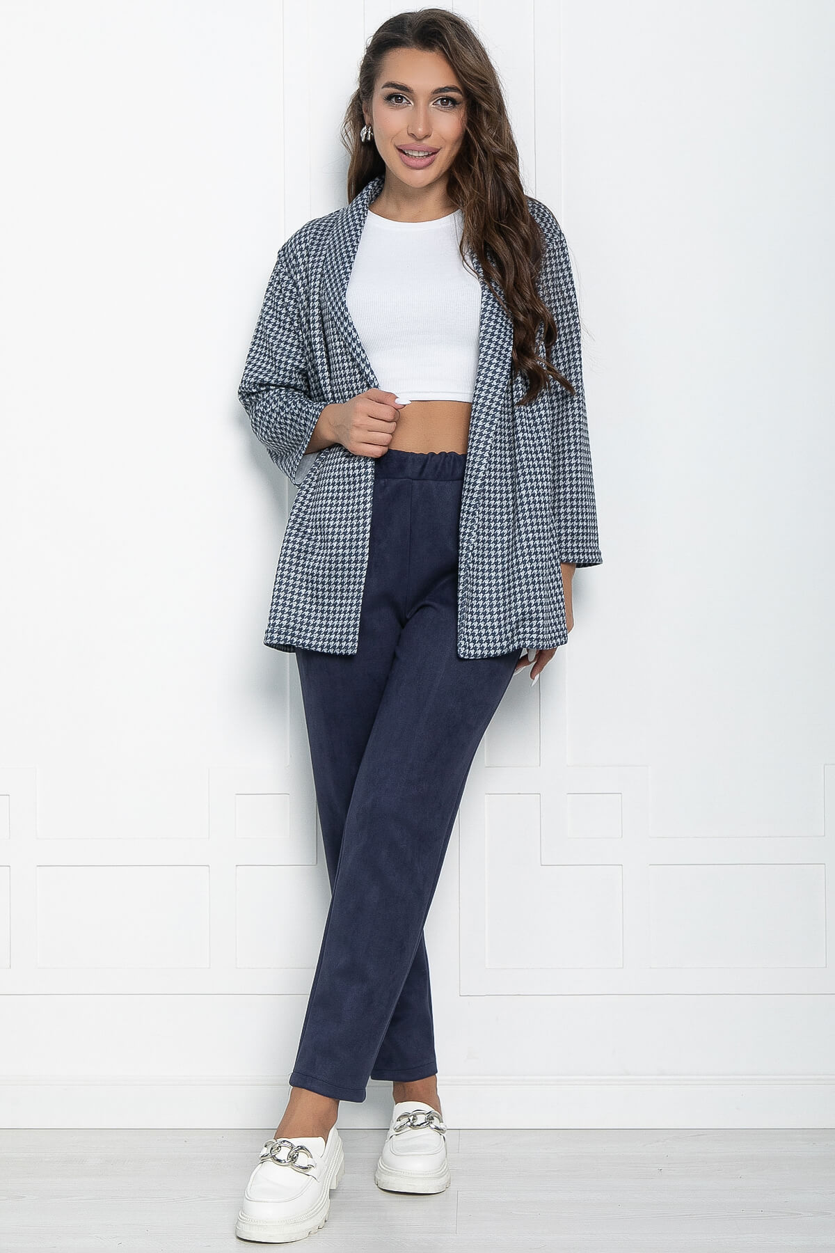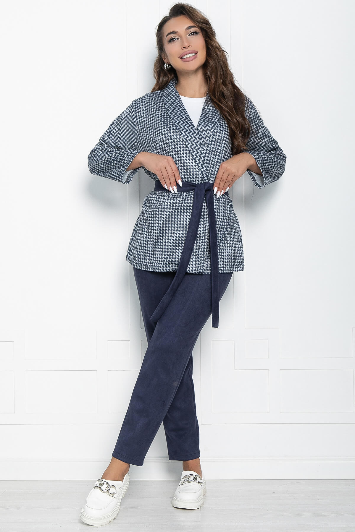 Наша стильная новинка поможет создать вам неповторимый образ для любого случая! Подойдет как для повседневного образа, так и для деловой встречи. Костюм-двойка состоит из брюк и жакета прямого кроя. Жакет имеет характерный V-образный вырез горловины, красиво подчёркивающий зону декольте, и втачной рукав 3/4. В комплект входит пояс из основной ткани. Брюки по талии на резинке.