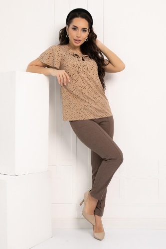 Рост модели: 167 см.Этот брючный женский комплект станет вашим идеальным выбором для любых случаев! Прямые брюки с современным кроем подчеркнут вашу женственность, а резинка в поясе обеспечит удобную посадку. Блуза, украшенная нежным бантом, выполнена из мягкого и приятного на ощупь материала. Она дарит комфорт и свободу движений, идеально сочетаясь с брюками. Дополните образ стильной сумкой и высокими каблуками — и вы будете неотразимы!