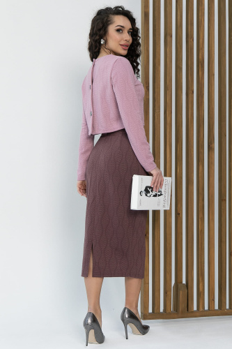 Костюм из трикотажа идеально подходит для демисезонного периода, обеспечивая комфорт и стиль в повседневной жизни. Округлый вырез горловины придает костюму классический вид, подходящий для различных повседневных ситуаций. Длинные рукава обеспечивают защиту от холода и добавляют уюта. Юбка полуприлегающего силуэта на молнии подчеркивает фигуру, создавая элегантный образ.