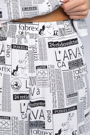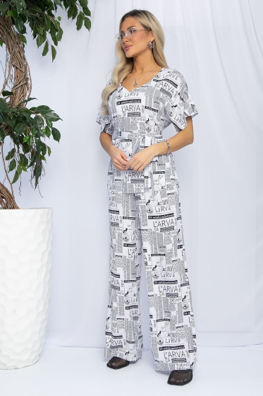 Легкий и очень приятный к телу брючный костюм из струящегося хлопка в модных цветовых оттенках этого сезона с необычным модным принтом. Натуральный состав ткани особенно важен в летнее время. Блуза свободного кроя с коротким рукавом-кимоно и разрезами по бокам. Свободные брюки в стиле палаццо придают костюму легкость и особый шик. Брюки имеют пояс на комфортной резинке, что позволяет чувствовать себя свободно и не сомневаться при выборе размера. Костюм имеет съемный пояс в комплекте. Свободный силуэт костюма подходит абсолютно для любой фигуры. Костюм актуален для любого мероприятия, романтических встреч и летних прогулок.