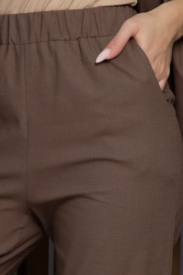Летний женский брючный костюм из натуральных тканей — это идеальный выбор для повседневного ношения в жаркие дни! Брюки классического кроя с резинкой по талии и карманами по боковым швам обеспечат вам удобство и комфорт. Верх костюма с шалевым воротником и цельнокроеными рукавами на манжетах придадут вашему образу элегантность и утонченность. А пояс из основной ткани на двух полукольцах завершит стильный образ. Этот костюм станет вашим незаменимым спутником в летние дни, позволяя вам чувствовать себя уверенно и комфортно. Ткань имеет растяжение.